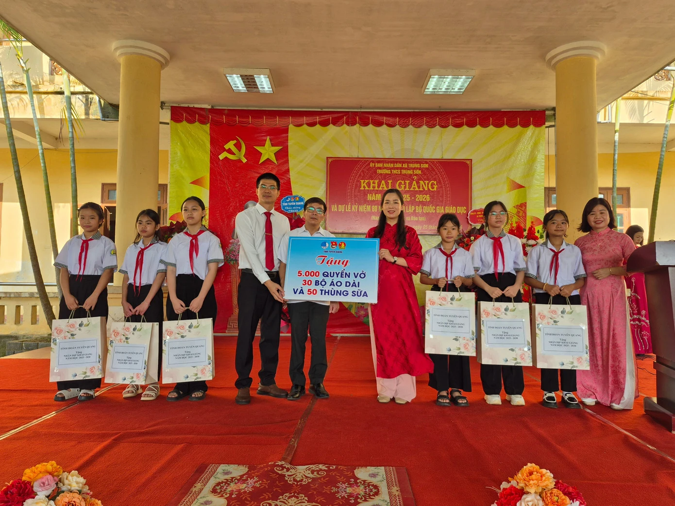 Dự buổi lễ có chị Dương Minh Nguyệt, Bí thư Tỉnh Đoàn Tuyên Quang, cùng lãnh đạo chính quyền địa phương. Dịp này, Tỉnh Đoàn trao tặng nhà trường 5.000 quyển vở, 30 bộ áo dài, 50 thùng sữa và nhiều phần quà khích lệ học sinh vùng cao.