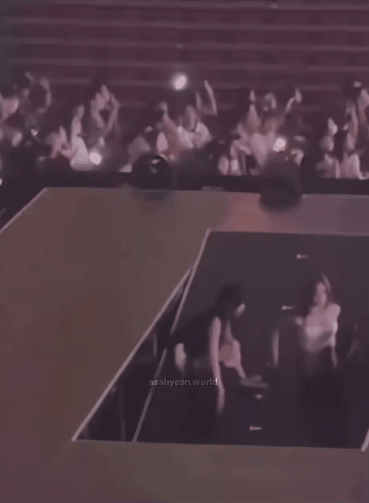 Cụ thể, khi đứng trên sân khấu ở vị trí bàn nâng, một bên sân khấu bất ngờ bị sập khiến cho thành viên Rora loạng choạng, không thể đứng vững. 5 thành viên còn lại cũng không khỏi hoang mang, cùng ngồi sụp xuống để từng người di chuyển vào khu vực hậu trường dưới sân khấu.