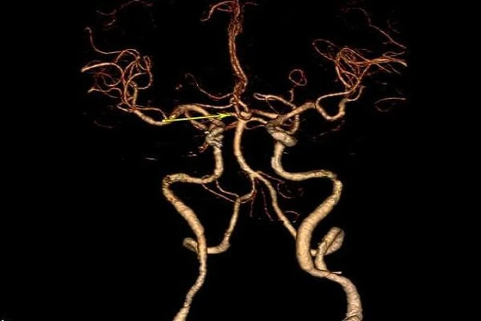 Bệnh nhân H.K.P (44 tuổi, Tây Ninh) là người vào viện trong tình trạng nặng nhất. Anh đang ngủ thì đột ngột rơi vào hôn mê, người nhà hốt hoảng đưa đến cấp cứu khi tri giác gần như không còn. Khi bác sĩ chụp CT dựng hình mạch, hình ảnh não hiện rõ tình trạng xuất huyết khoang dưới nhện, máu tràn vào khoang quanh não do vỡ túi phình động mạch não thông trước. Đó là dạng xuất huyết có tỷ lệ tử vong cực kỳ cao nếu không được xử lý ngay tức thì.