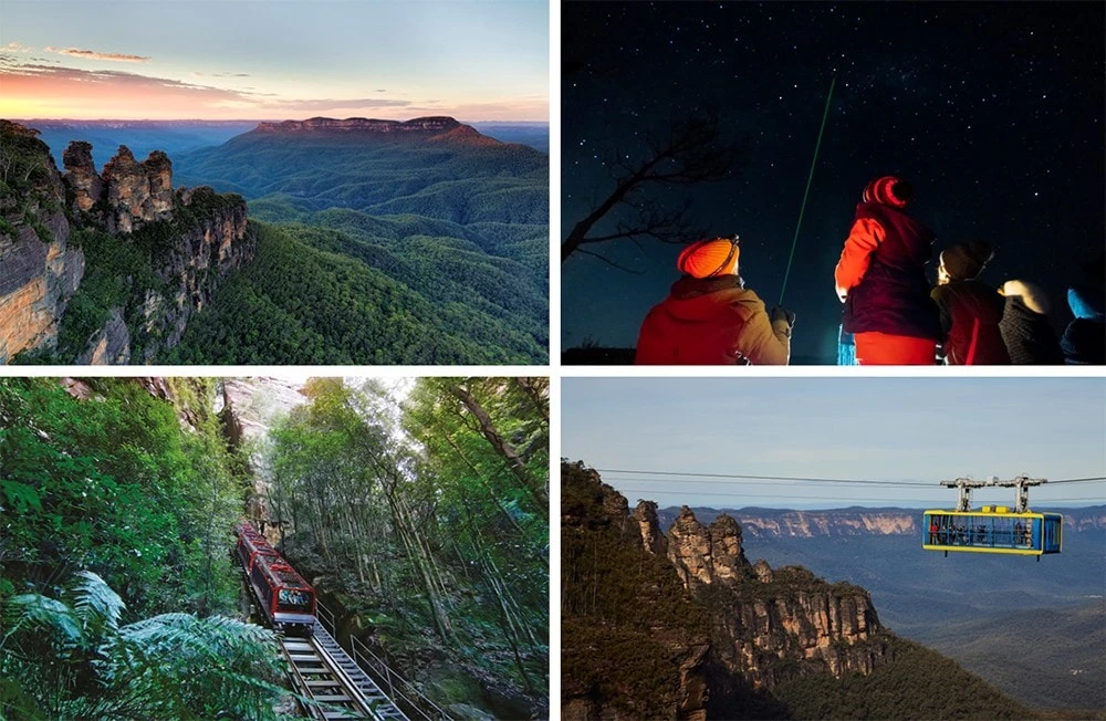 Chỉ cách Sydney khoảng 90 phút lái xe, dãy Blue Mountains mở ra một thế giới hoàn toàn khác biệt với núi non hùng vĩ, những thung lũng mờ sương và thác nước ào ạt. Du khách có thể trải nghiệm hệ thống cáp treo và đường sắt dốc nhất thế giới tại Scenic World, đi bộ qua những con đường mòn để đến các điểm ngắm cảnh ngoạn mục, và chiêm ngưỡng khối đá Ba Chị Em (Three Sisters) nổi tiếng từ Echo Point. Không khí trong lành và cảnh quan thiên nhiên kỳ vĩ khiến Blue Mountains trở thành điểm đến lý tưởng cho một chuyến đi trong ngày hoặc qua đêm từ Sydney.