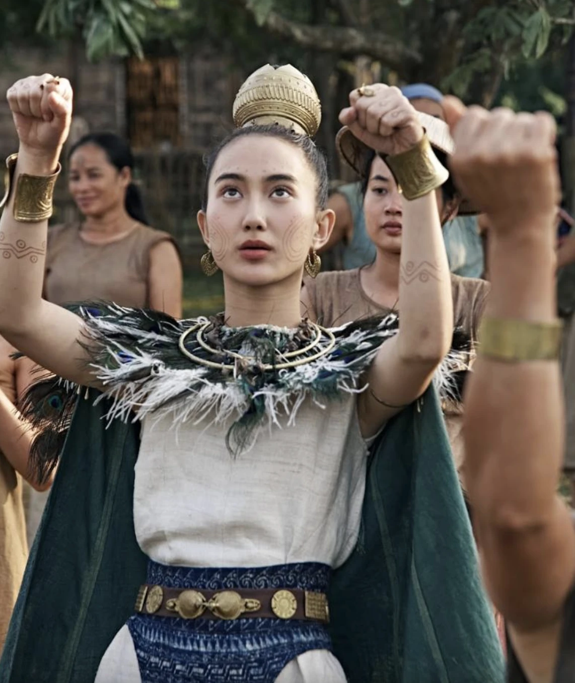 Trong bộ trang phục đậm màu sắc huyền sử, Thanh Tâm mang đến làn gió mới với đường nét mộc mạc, giản dị, đúng chuẩn tinh thần bộ phim hướng tới. Tuy nhiên, không vì vật mà Thanh Tâm trở nên mờ nhạt giữa một loạt diễn viên thực lực. Mỹ nhân gen Z vẫn toát lên vẻ xinh xắn, nét ngài sắc sảo nhưng không kém phần mềm mại.