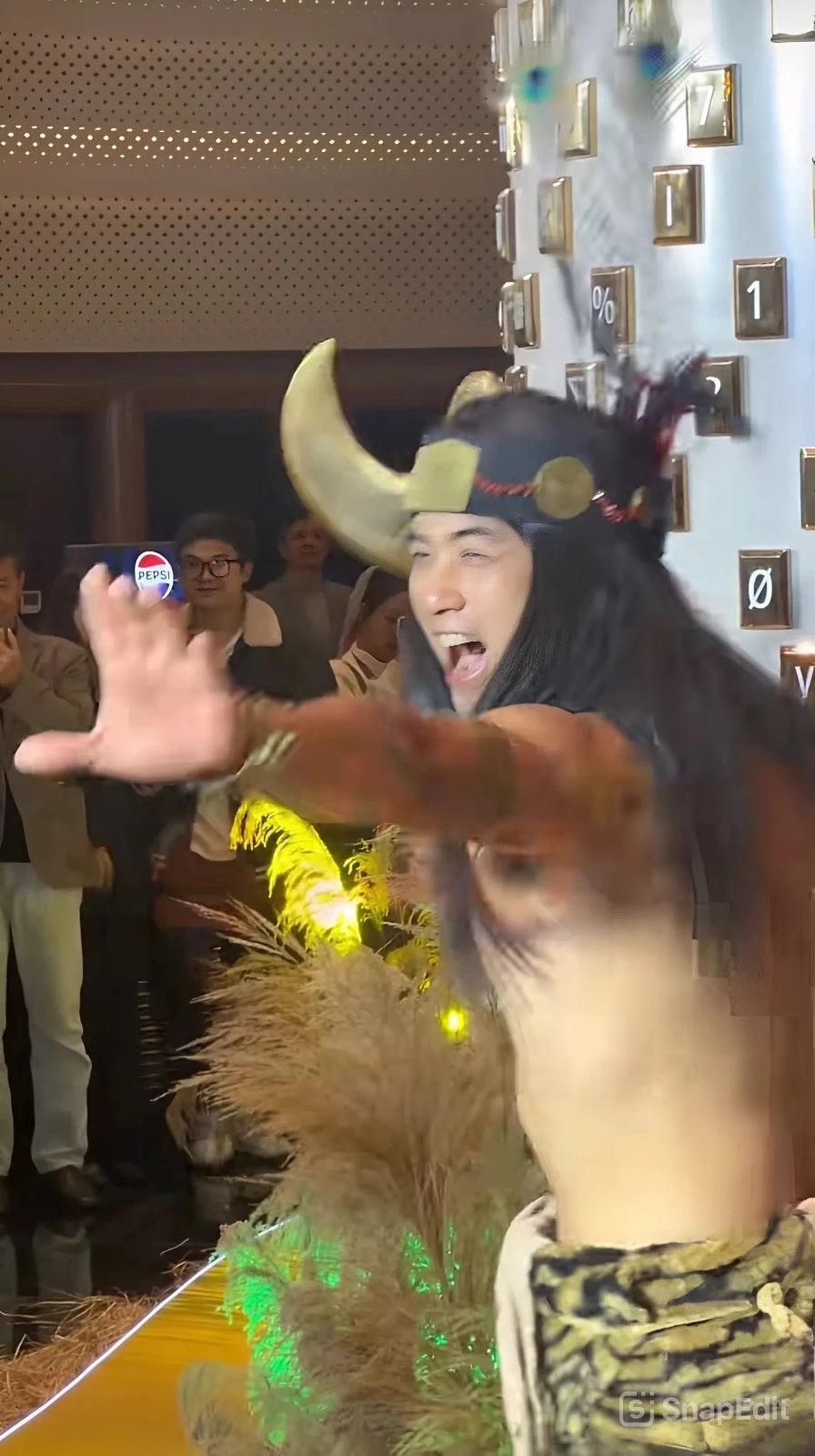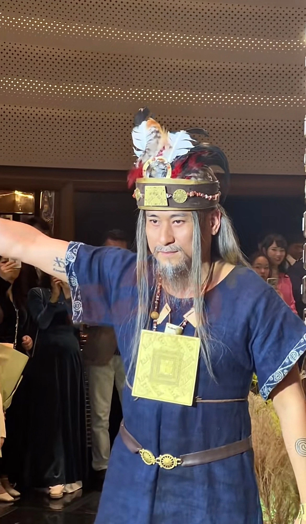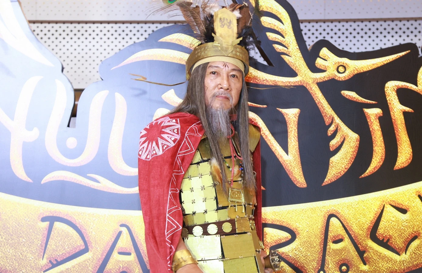 Diễn viên cho biết giáp trụ của vua Hùng được ghép bằng gần 500 lá đồng, do ba nhân viên làm liên tục trong hai tháng.