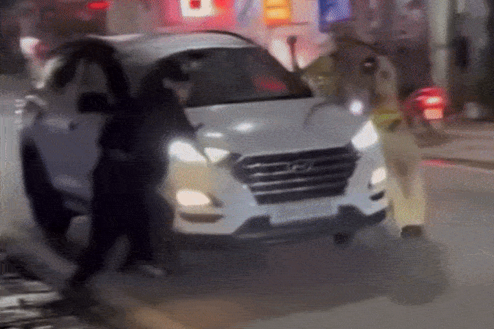 Huy điều khiển ô tô tông vào tổ công tác để bỏ trốn (Ảnh: Cắt từ clip).