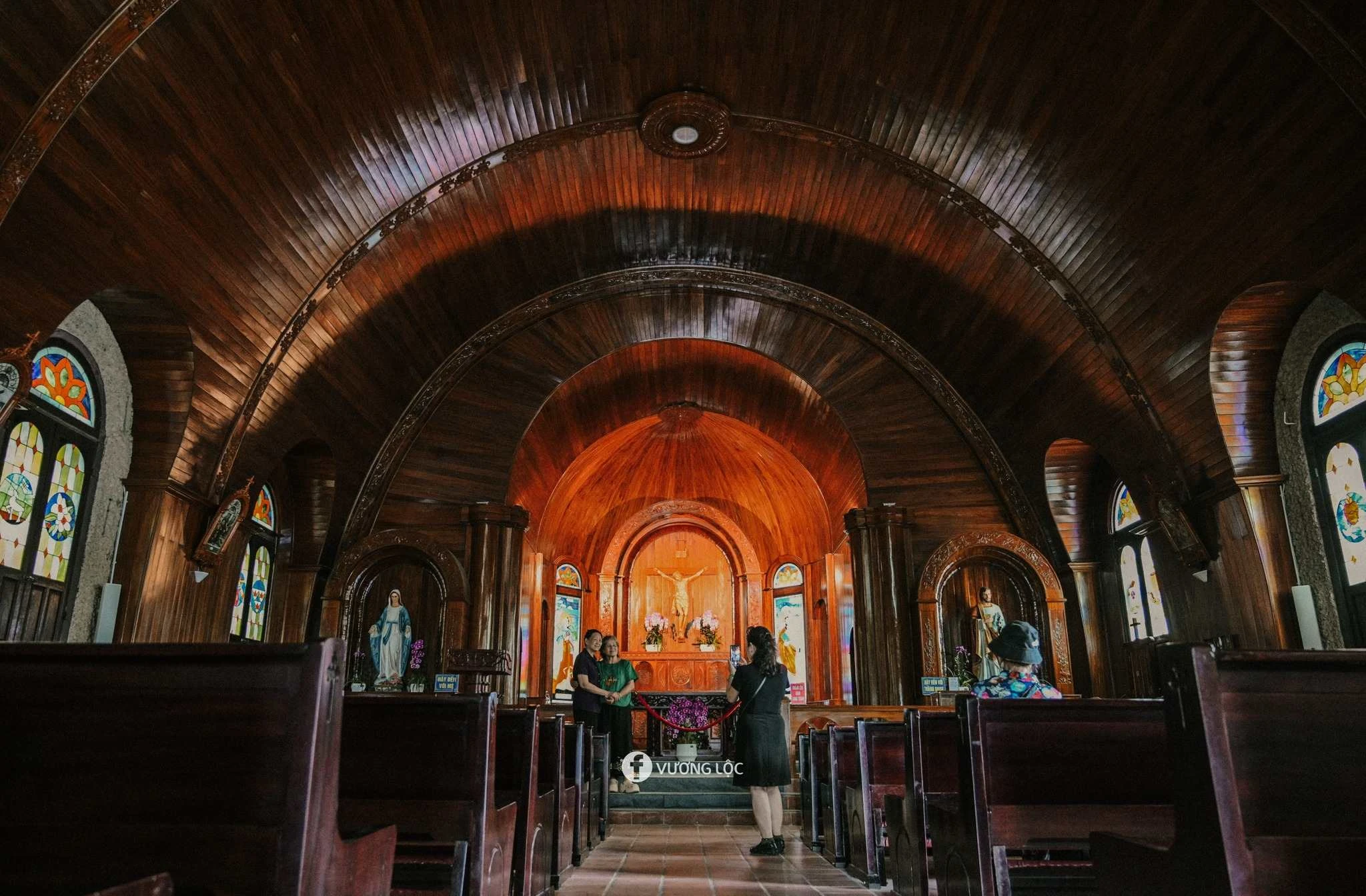 Theo TTXVN, nhà thờ được xây dựng từ năm 1906, ban đầu chỉ là ngôi nhà sàn lợp lá. Đến năm 1937, công trình được kiến thiết lại hoàn toàn bằng đá theo phong cách Gothic. Ảnh: Vương Lộc