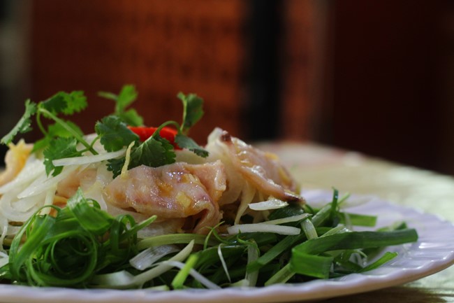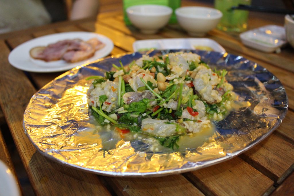 Gỏi cá bớp do một quán ăn trên đường Vườn Chuối, quận 3 giới thiệu với thực khách TPHCM. Món ăn này do người chủ đời đầu vô tình tìm ra công thức rồi trở thành món “đinh” của quán. Nhờ trộn với chanh nên cá gần như chín tái khi phục vụ thực khách. Ảnh: Tô Huyền.