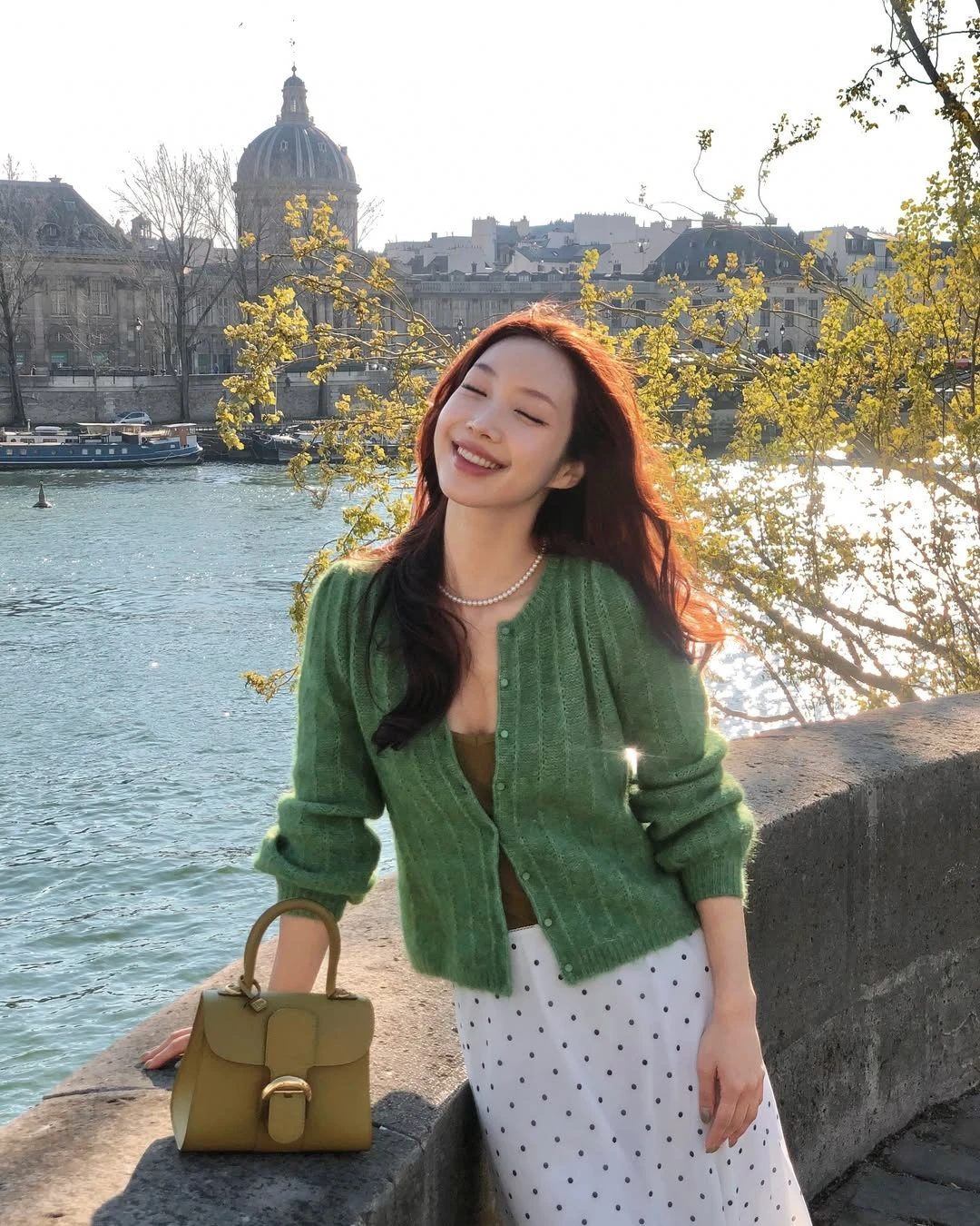 Cách phối chân váy ngắn với áo len đẹp style Hàn Quốc