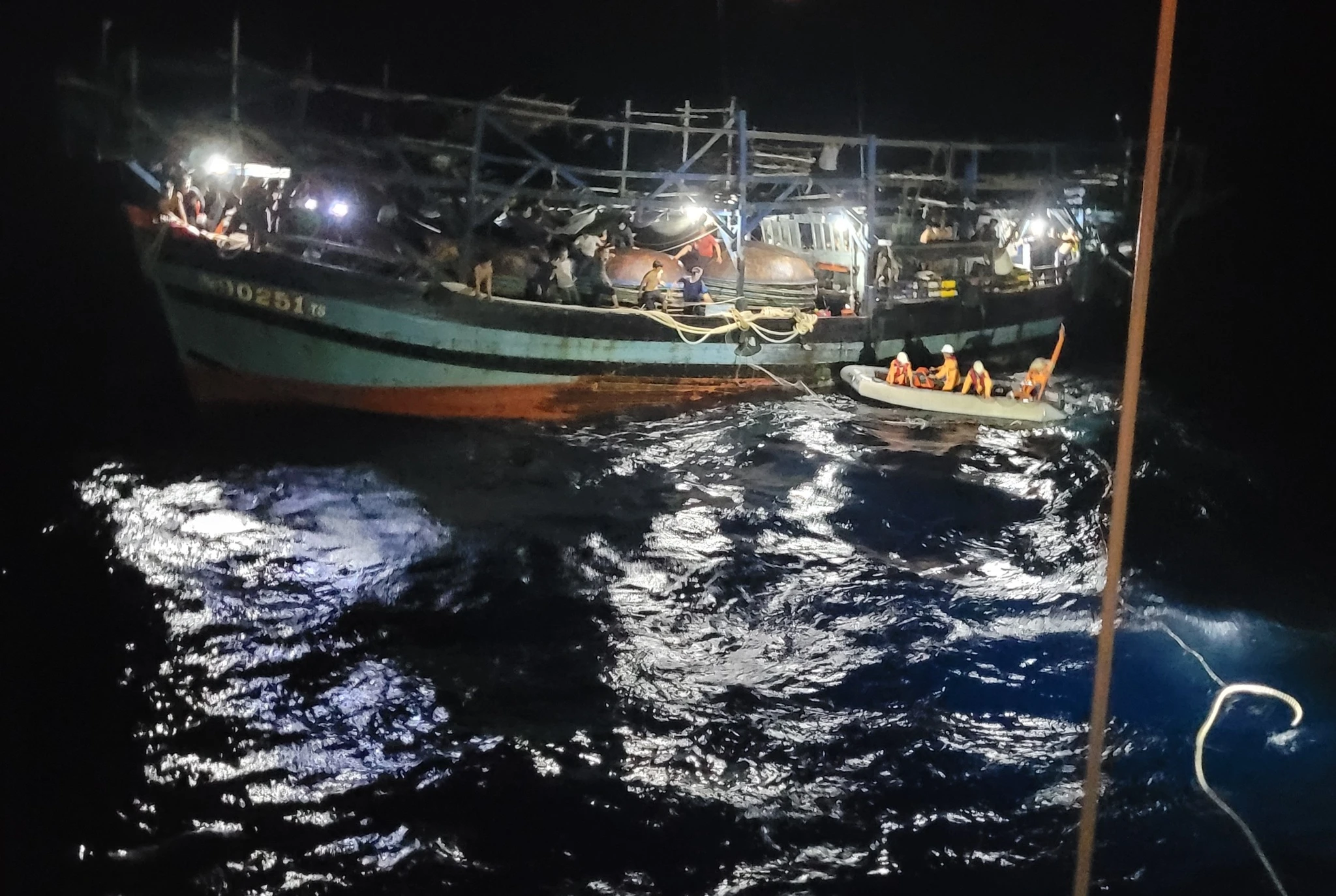 Tàu cá ngư dân ở Gia Lai gặp nạn trên biển được lực lượng chức năng hỗ trợ (Ảnh minh họa: Công Cường).