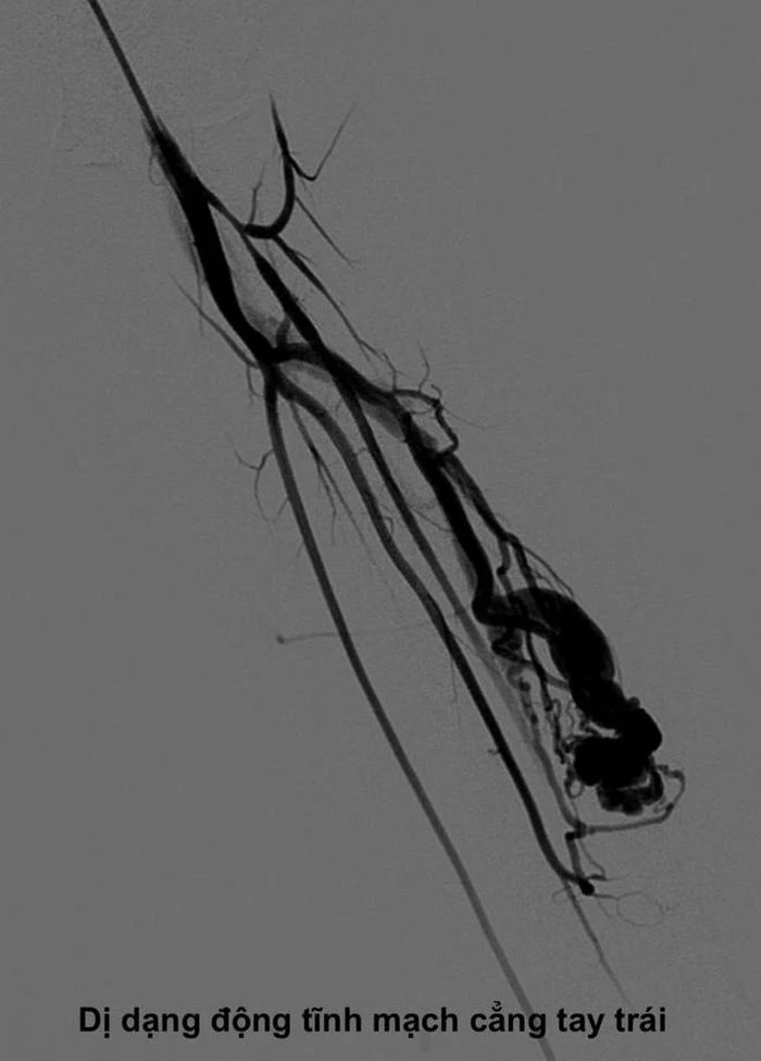 Tại Khoa Chẩn đoán hình ảnh và Điện quang can thiệp (Bệnh viện Đại học Y Hà Nội), bệnh nhân đã được thăm khám kỹ lưỡng và thực hiện các kỹ thuật chẩn đoán chuyên sâu như siêu âm Doppler mạch máu và chụp cộng hưởng từ (MRI). Kết quả đã xác định chính xác tổn thương là một ổ dị dạng động tĩnh mạch (AVM) nằm sâu trong cơ cẳng tay trái.