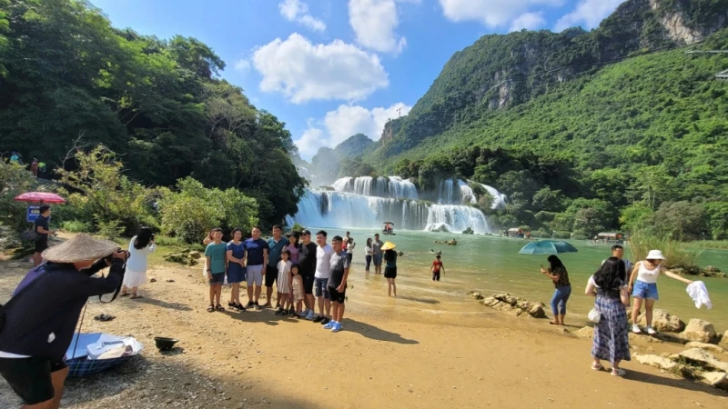 Thời điểm này, thác Bản Giốc luôn đón lượng khách du lịch lớn đến tham quan, trải nghiệm và chụp ảnh lưu niện bên dòng thác hùng vĩ.