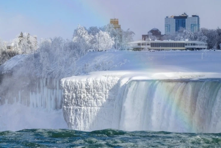 Khám phá vẻ đẹp ngoạn mục của thác Niagara khi nhiệt độ xuống thấp, biến dòng nước hùng vĩ thành những khối băng trắng xóa và khung cảnh tuyết phủ tựa cổ tích.