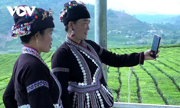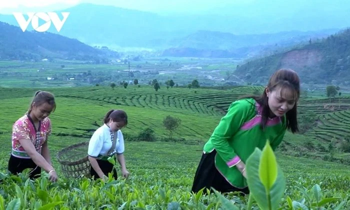 Ngay từ sáng sớm, những cô gái trong trang phục sắc màu dân tộc Thái, Lào đã bước nhẹ trên những con đường hướng về các đồi chè, chuẩn bị cho 1 ngày lao động thu hái chè