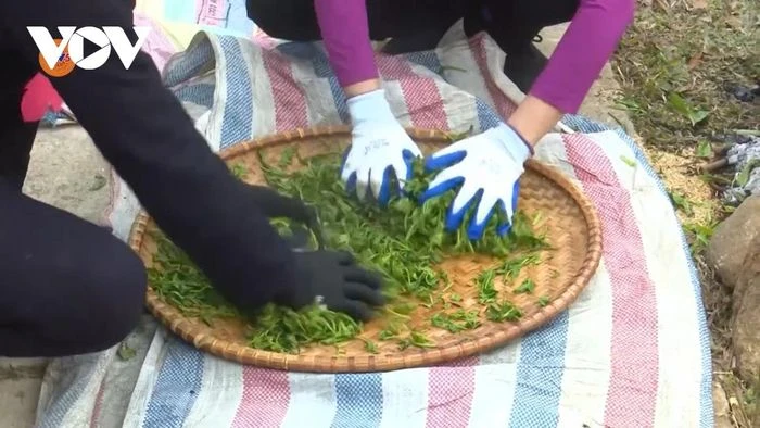 Dưới bàn tay thoăn thoắt của những cô gái người bản địa, từng búp chè xanh non mơn mởn được thu hái theo tiêu chuẩn.