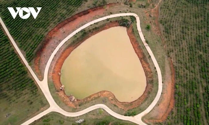 Đặc biệt, từ chòi quan sát du khách sẽ được ngắm nhìn hồ nước hình trái tim, với đường dạo quanh hồ thơ mộng