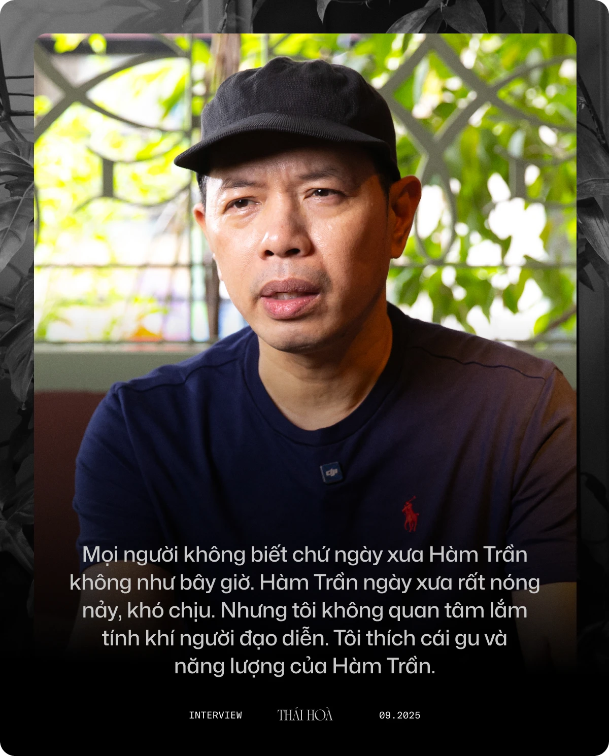 Đầu tiên là kịch bản, rồi đạo diễn Hàm Trần, vai diễn, ê-kíp và dự án khiến tôi tin tưởng. Trong các nhà đầu tư có Kaity Nguyễn, Galaxy, Điện ảnh Công an Nhân dân. Tôi cũng thích năng lượng của Hàm Trần. Từ đó đến giờ tôi chưa có cơ hội làm việc với Hàm Trần, chỉ biết Hàm Trần qua những phim Hàm Trần dựng mà tôi có đóng. Tôi cũng nghe nói nhiều về tính khí của Hàm Trần. Mọi người không biết chứ ngày xưa Hàm Trần không như bây giờ. Hàm Trần ngày xưa rất nóng nảy, khó chịu. Nhưng tôi không quan tâm lắm tính khí người đạo diễn. Tôi thích cái gu và năng lượng của Hàm Trần.