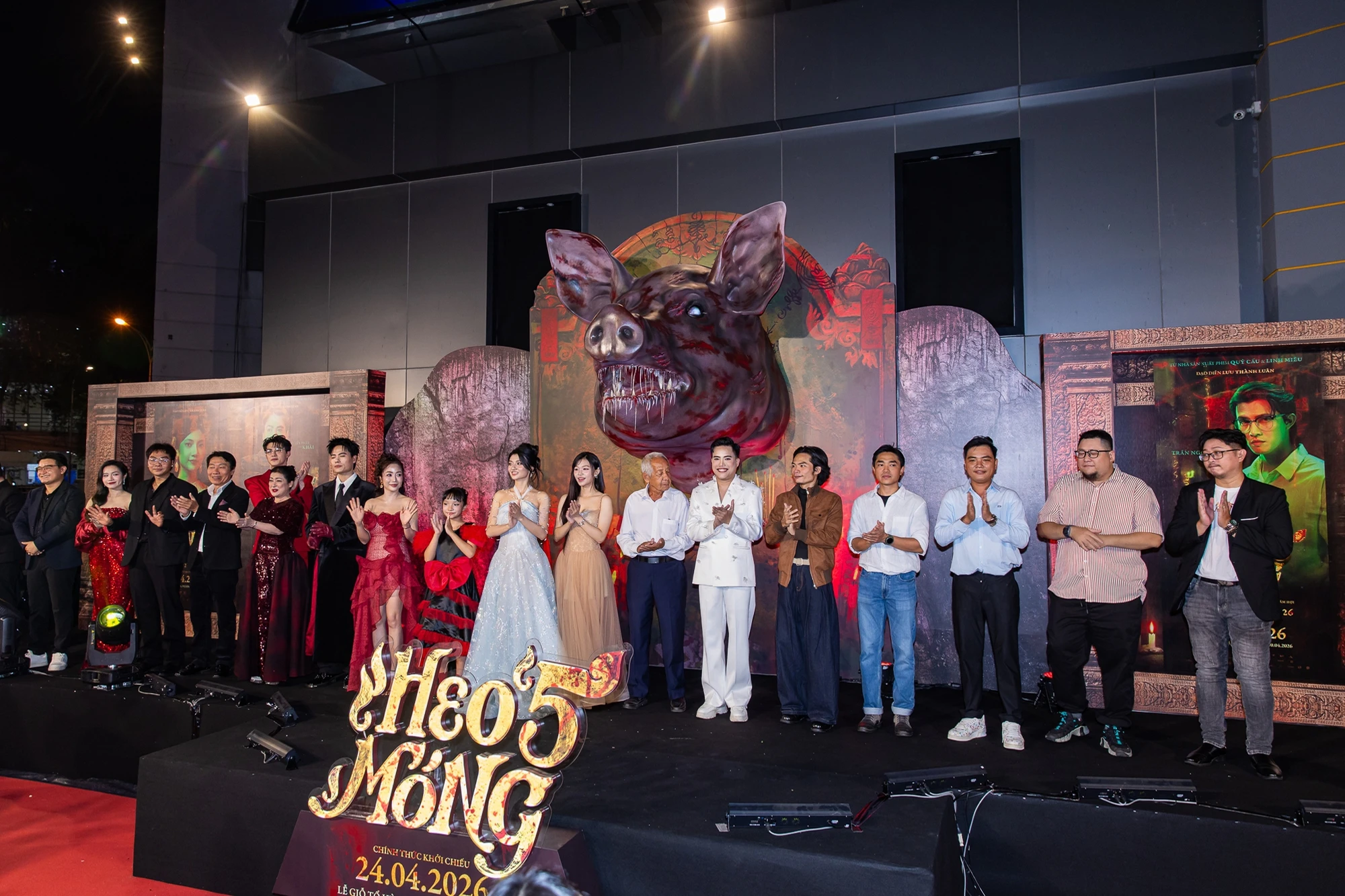 Tối ngày 22/4, tại TP.HCM đã diễn ra thảm đỏ ra mắt dự án điện ảnh Heo 5 Móng. Không chỉ là buổi công chiếu phim thông thường, sự kiện biến thành một đại tiệc visual khi quy tụ dàn sao đình đám bậc nhất Vbiz đến chúc mừng ê-kíp. Bên cạnh dàn diễn viên chính của bộ phim, thảm đỏ còn chào đón sự xuất hiện của những cái tên “khủng” như Tóc Tiên, Diệu Nhi, Phương Mỹ Chi, Jun Vũ, Đoàn Thiên Ân, Đoan Trang, Thúy Ngân, Kim Tuyến, Quốc Anh, Đình Khang…