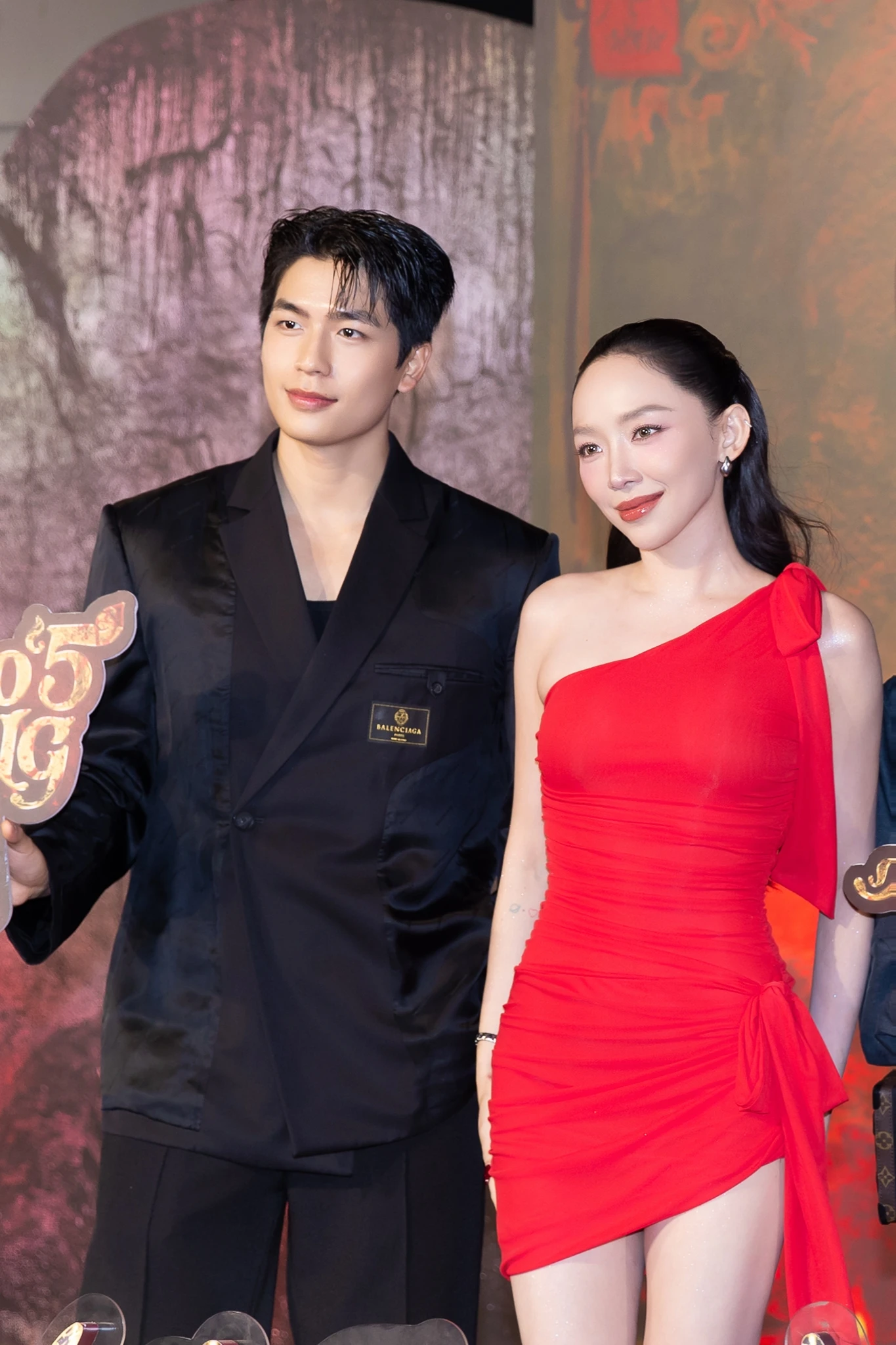 Tâm điểm của sự chú ý chắc chắn thuộc về cặp đôi Tam Triều Dâng và Võ Điền Gia Huy. Xuất hiện bên cạnh nhau, cả hai khiến người hâm mộ “quắn quéo” bởi độ đẹp đôi và những tương tác cực kỳ ngọt ngào. Nếu Tam Triều Dâng ghi điểm tuyệt đối với vẻ ngoài trong trẻo, xinh xắn như công chúa trong bộ váy ngắn thanh lịch thì Võ Điền Gia Huy lại đầy lãng tử, phong trần trong set đồ màu đỏ đô mix cùng quần tây. Cặp đôi liên tục “dính như sam” từ trên thảm đỏ cho đến lúc vào bên trong rạp, cả hai vẫn chọn vị trí ngồi sát cạnh nhau. Sự thân thiết và “phản ứng hóa học” bùng nổ của nam nữ chính Vì Mẹ Anh Phán Chia Tay khiến người hâm mộ “đứng ngồi không yên”.