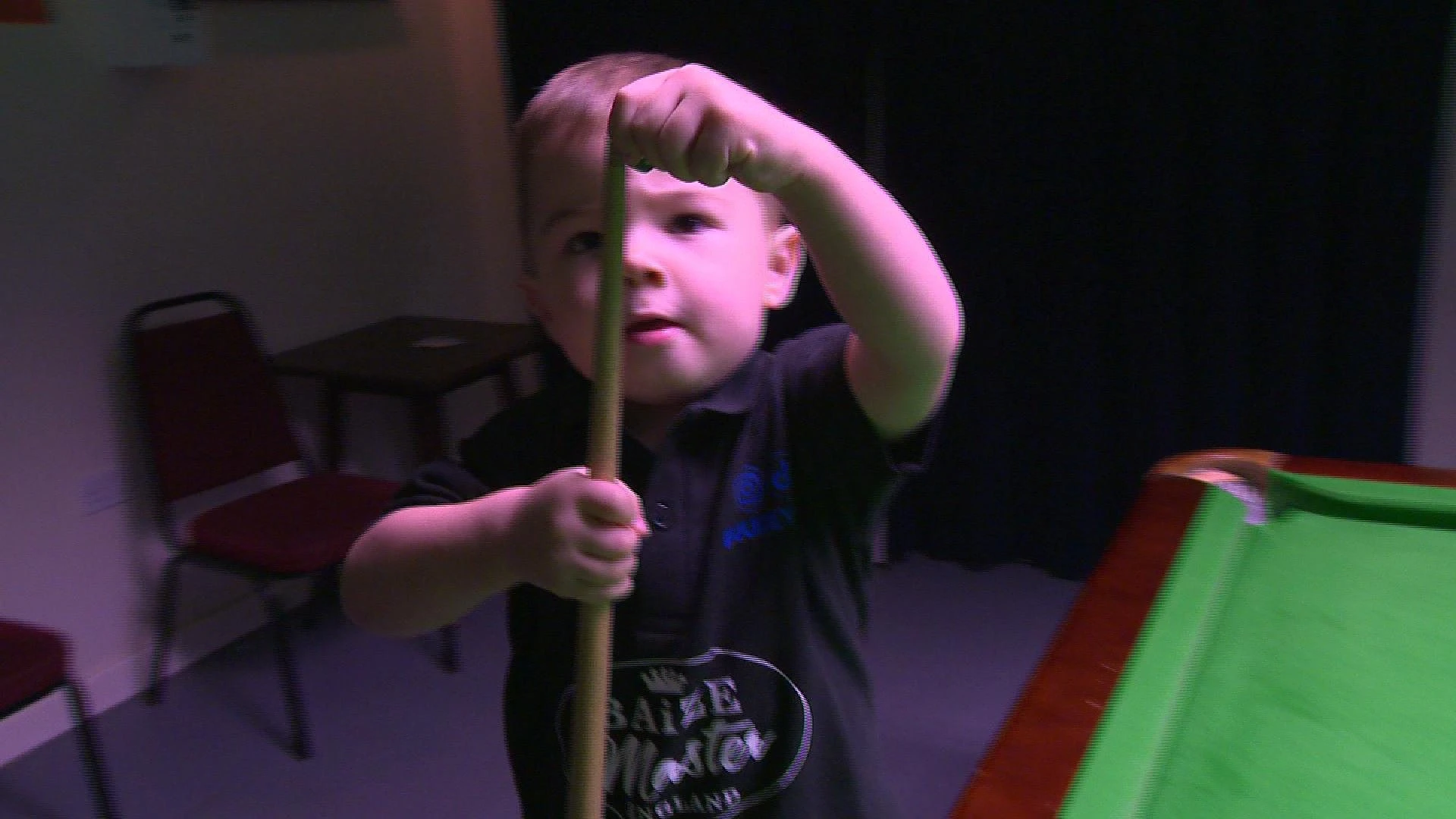 Em bé ở Anh 2 tuổi đã biết chơi bi-a.