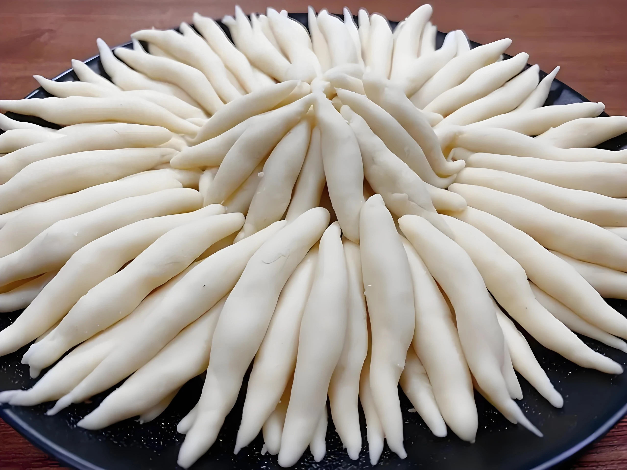 Khi đã sẵn sàng, rắc một lớp mỏng bột áo lên mặt bàn. Cán khối bột thành tấm có bề dày vừa phải. Cắt dải đều nhau để thành sợi mì đẹp. Ai thích kiểu thôn dã có thể vo từng sợi bằng tay như kéo dây thừng nhỏ. Mì tự làm kiểu nào cũng nhanh chín và giữ được hương thơm bùi của củ mài. Trong lúc chờ bột nghỉ, bạn chuẩn bị nồi sốt nền.