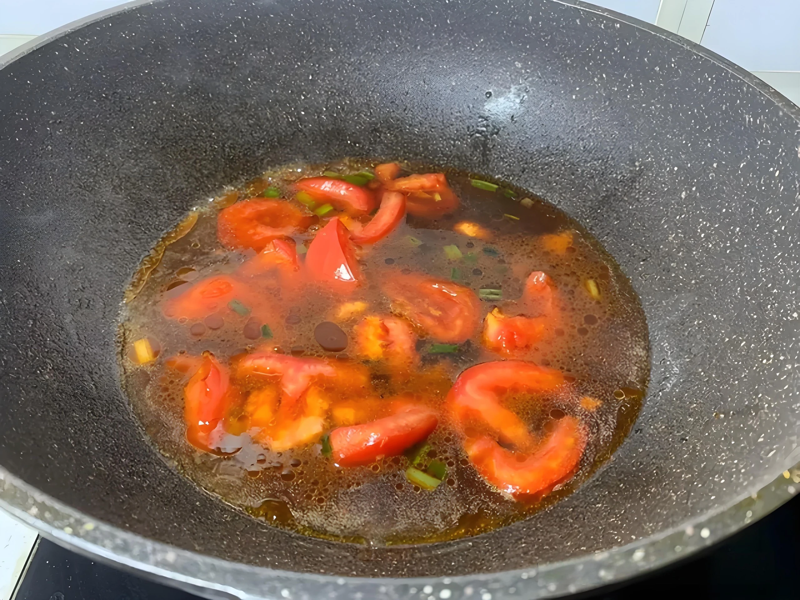 Chọn quả cà chua chín đỏ, khía nhẹ chữ thập, trụng qua nước sôi rồi lột vỏ cho sạch vị chát. Phi thơm đầu hành cùng chút gừng băm, cho cà chua vào đảo đến khi ra nước, nêm một ít nước tương cho dậy vị, thêm muối vừa miệng và châm nước dùng hoặc nước sôi. Khi nồi sốt sôi bùng, hương cà chua quyện cùng hành gừng tạo nên vị chua ngọt ấm bụng rất hợp thời tiết.