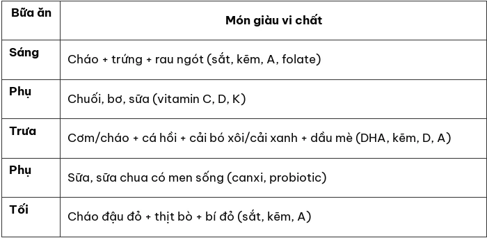 Gợi ý thực đơn giúp cung cấp vi chất tự nhiên: