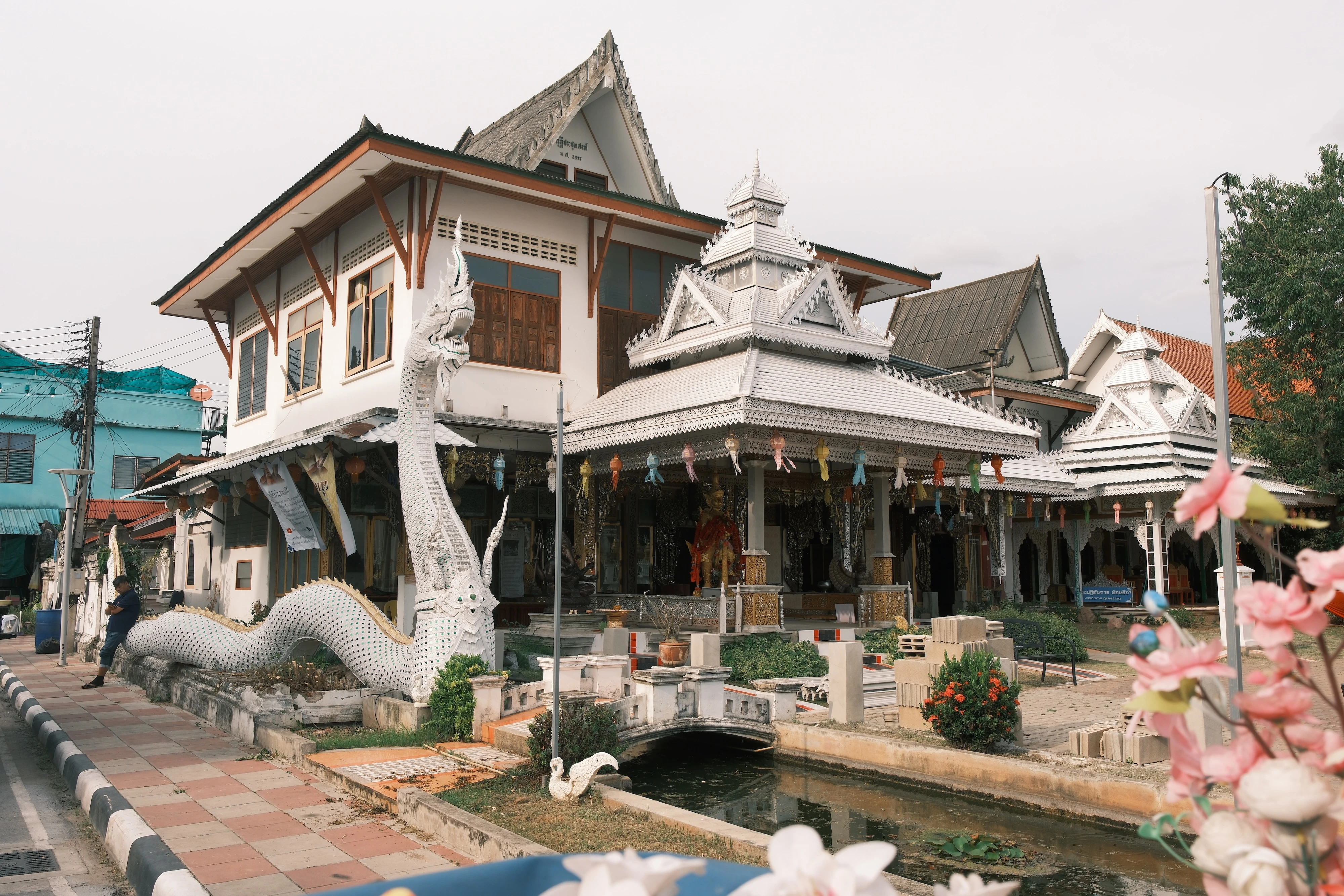 Ẩn sau lớp kim loại sáng bóng là kết cấu Lanna cổ điển với mái chồng nhiều tầng, cột gỗ tếch chạm trổ và mái hiên trang trí công phu. Trong khuôn viên chùa còn có gian thờ chính (Viharn), bảo tháp (Chedi) và xưởng thủ công, nơi du khách có thể quan sát nghệ nhân chế tác bạc tại chỗ. Theo phong tục địa phương, chỉ nam giới được vào chánh điện.