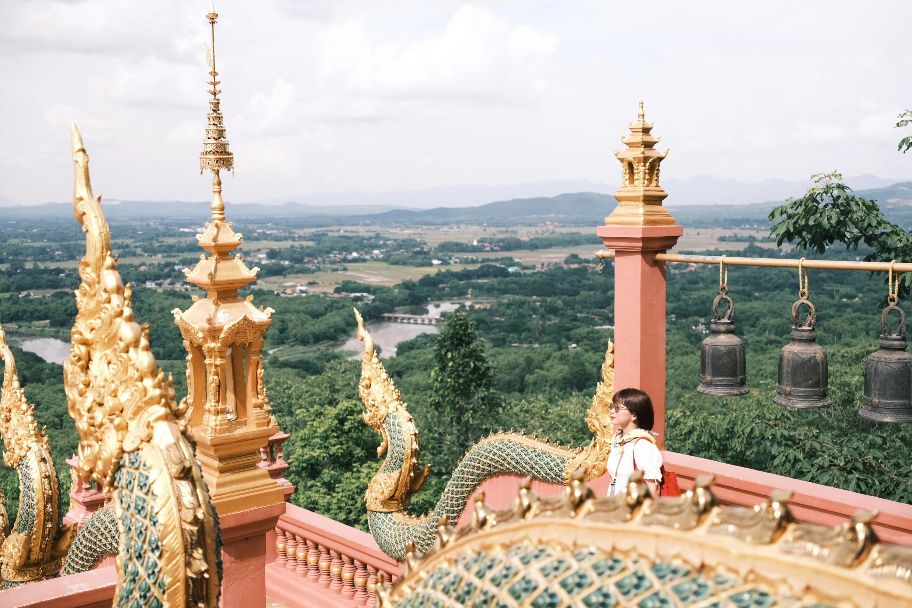 Sáng ngày thứ hai ở Chiang Mai, chị Mai Anh ghé chùa Doi Suthep, tên gọi chính thức là Wat Phra That Doi Suthep. Ngôi chùa Phật giáo nằm trên đỉnh núi Doi Suthep, nơi du khách có thể phóng tầm mắt bao quát toàn cảnh thành phố Chiang Mai, được xem là một trong những điểm hành hương quan trọng bậc nhất miền bắc Thái Lan. Chùa nổi bật với bảo tháp dát vàng rực rỡ, những đường nét chạm khắc tinh xảo cùng lối kiến trúc mang dấu ấn văn hóa Lanna.