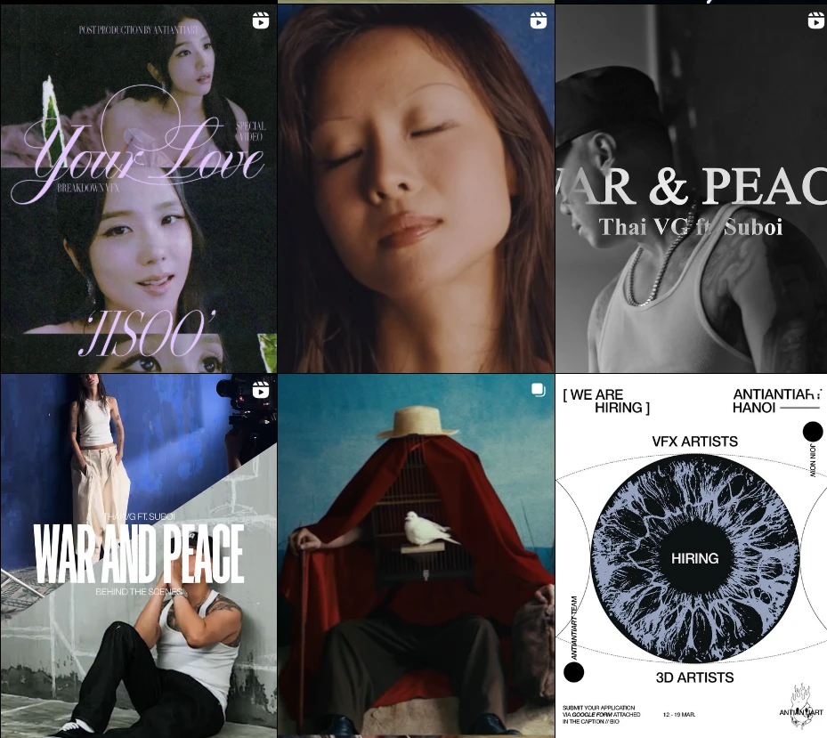 Chỉ tính trong năm 2024 - đầu năm 2025, sản phẩm của Antiantiart đã phủ kín Vpop. Một số MV tiêu biểu có thể kể đến như Nâng Chén Tiêu Sầu - Bích Phương; parody Haru Haru - MCK; pho real - Low G ft. Canada bbno$, Anh Phan; chuỗi 9 MV ả - marzuz; HOP ON THE SHOW - tlinh x Low G; The Real Aura - MV chủ đề Em Xinh Say Hi; 2323 - MCK; Tự Hỏi - Hồng Nhung, WAR AND PEACE - Thai VG x Suboi,... Tất cả đều có dấu ấn riêng biệt, thể hiện tầm nhìn và nghệ thuật thị giác chất lượng cao, xứng đáng với danh xưng tổ đội sáng tạo chất nhất Việt Nam.