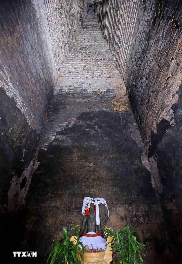 Không gian thờ thần Shiva nằm trong lòng Tháp Chính (Kalan) của quần thể tháp Bánh Ít. (Ảnh: Nhật Anh/TTXVN)