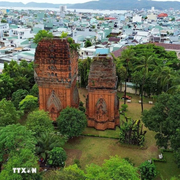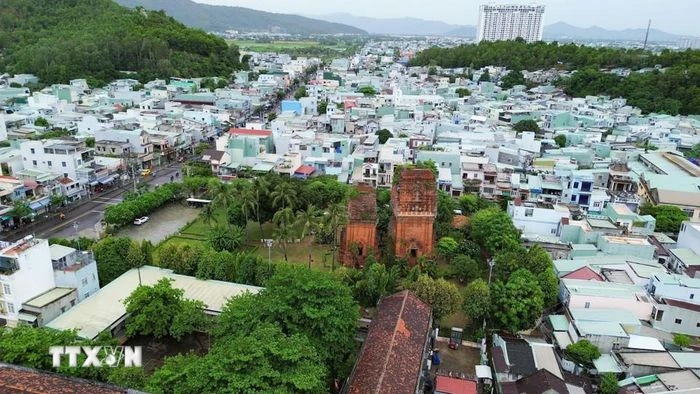 Tháp Đôi sừng sững giữa lòng thành phố Quy Nhơn, Bình Định, biểu tượng cho dấu ấn Chăm Pa rực rỡ trên "vùng đất võ." (Ảnh: Thanh Tùng/TTXVN)
