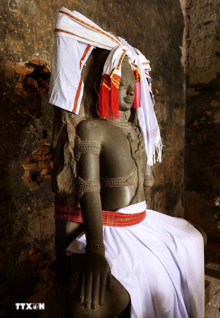 Bức tượng thần Shiva nằm ở Tháp Chính (Kalan) của quần thể tháp Bánh Ít. (Ảnh: Nhật Anh/TTXVN)