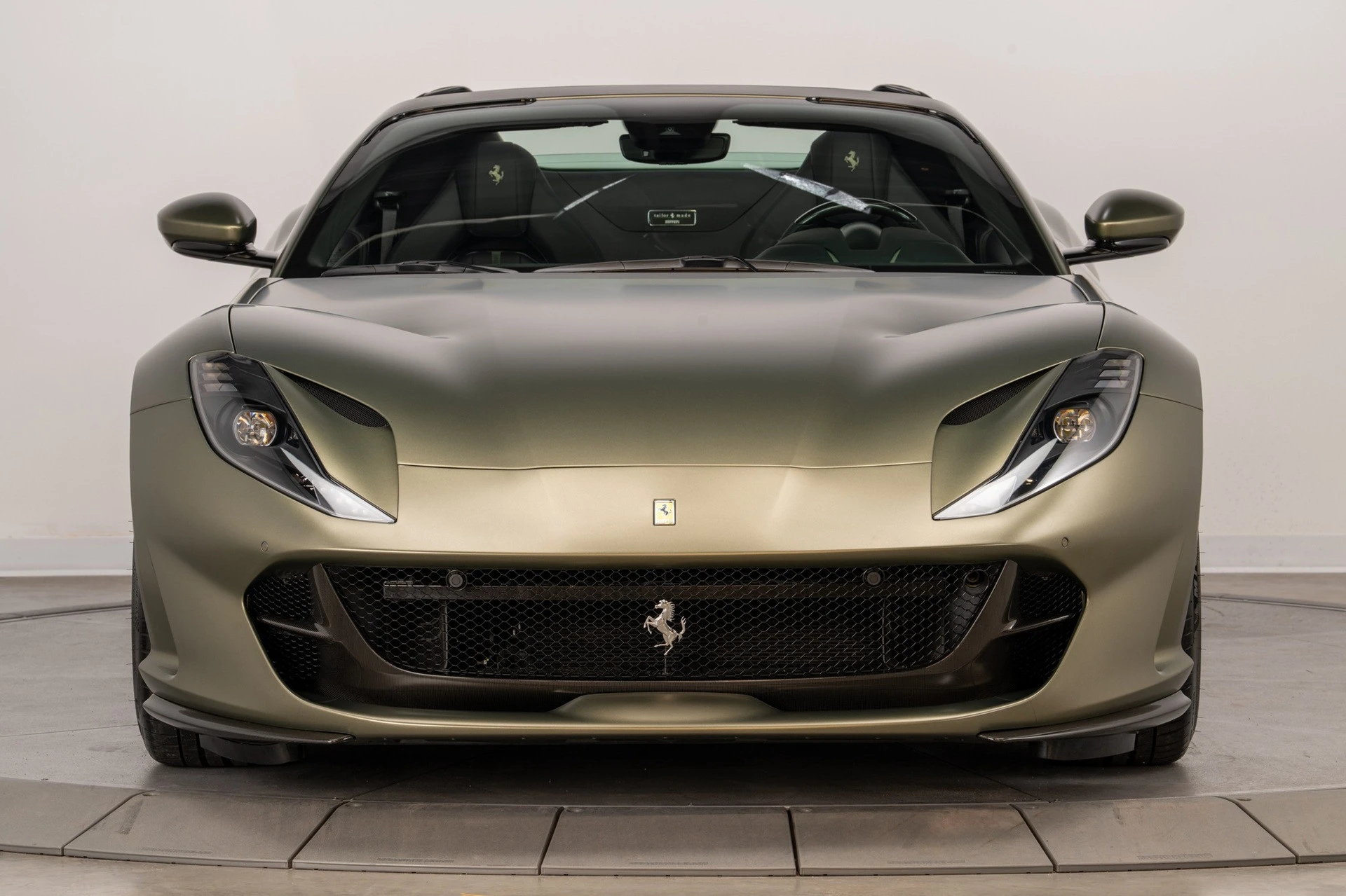 Nội thất xe có thể sẽ kết hợp giữa hai màu đen và xanh lục giống như ngoại thất. Nhiều chi tiết được làm bằng sợi carbon như vô-lăng, lẫy chuyển số, cụm điều khiển trung tâm, ốp cửa gió điều hòa,… Ferrari 812 không được trang bị màn hình giải trí, chỉ có bảng đồng hồ sau vô-lăng và màn hình nhỏ trên táp-lô bên phụ.