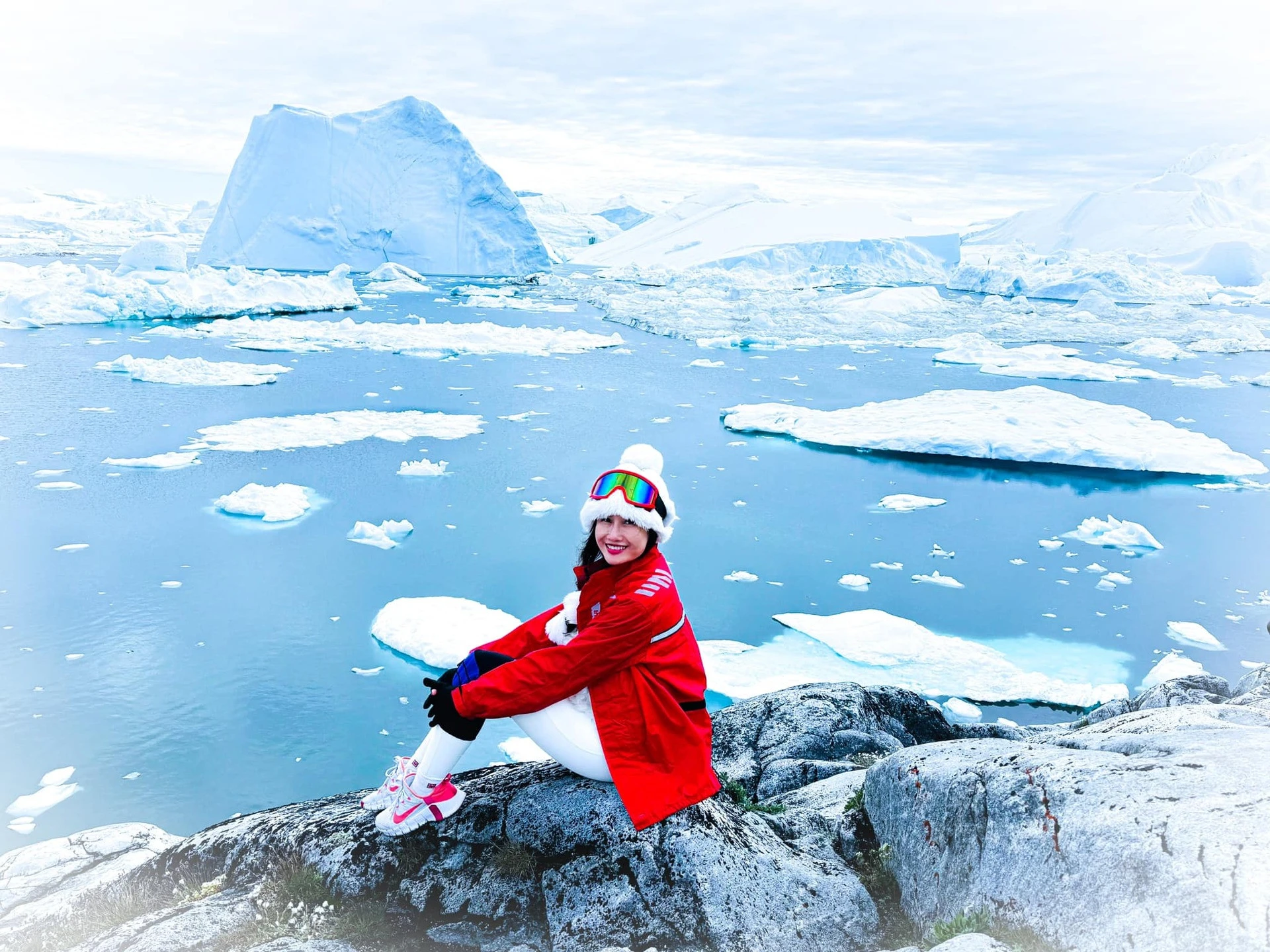 Chị Ngọc tại Greenland (Đan Mạch) - vùng đất trắng xóa băng tuyết, nơi tất cả các con sông đều đóng lớp băng dày. Thời tiết ở đây vô cùng khắc nghiệt, nhiệt độ trung bình -24 độ C