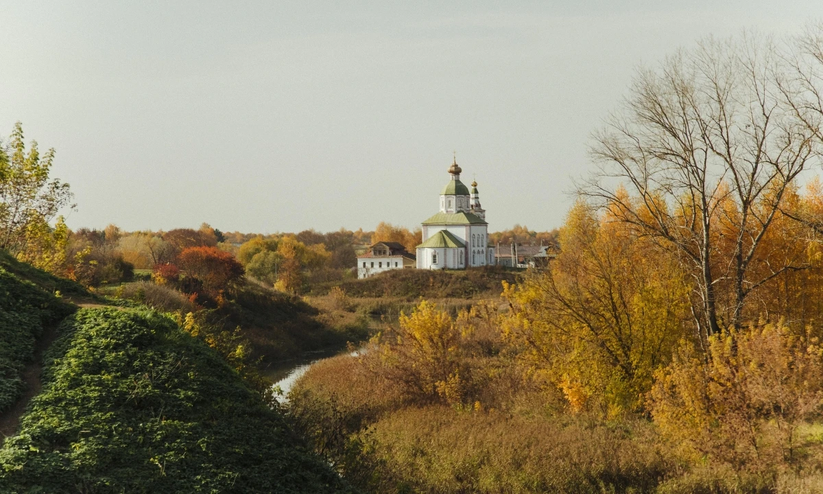 Giữa tiết trời thu, Suzdal tĩnh lặng với những ngôi nhà gỗ truyền thống và tiếng chuông nhà thờ vang vọng giữa không gian đồng quê.