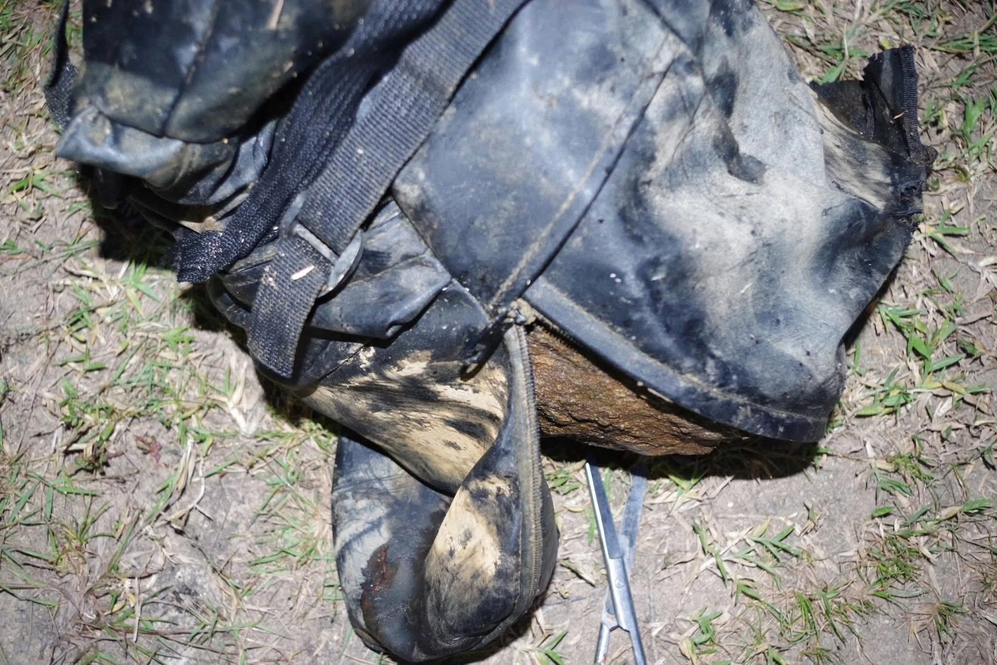 Trên lưng tử thi có đeo ba lô chứa tảng đá nặng khoảng 20 kg