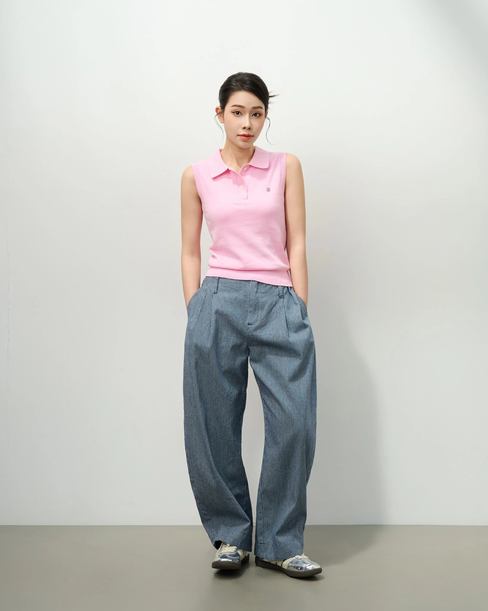 Cá tính, chất chơi mà vẫn lịch thiệp rạng ngời từ sự kết hợp của hồng và xám trên áo polo không tay, quần dài công sở và giày sneakers . ẢNH: K.STYLE STUDIO