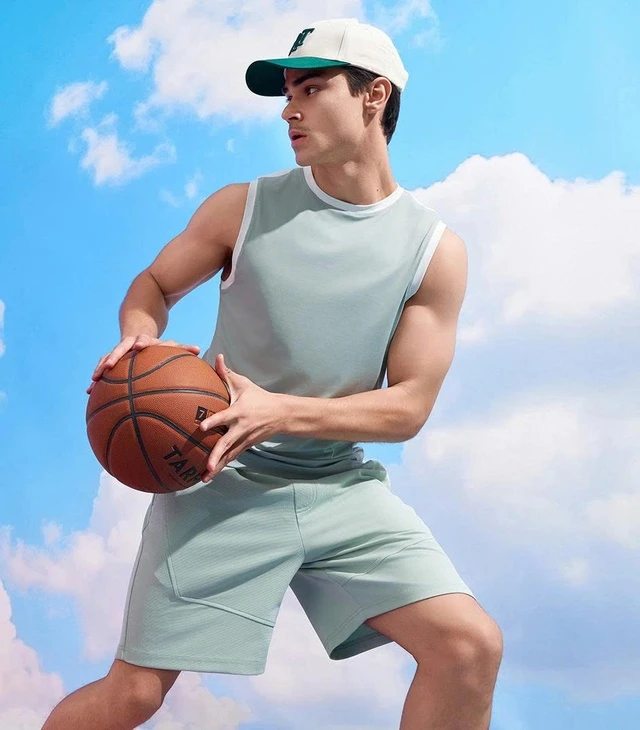 Set đồ tone sur tone màu xanh pastel mát mắt, khắc họa hình ảnh phóng khoáng, tràn đầy năng lượng. Thiết kế áo sát nách phối với quần shorts đồng bộ giúp người mặc dễ dàng vận động. Bản phối này là lựa chọn hoàn hảo cho những buổi tập luyện bóng rổ, gym hay chạy bộ
