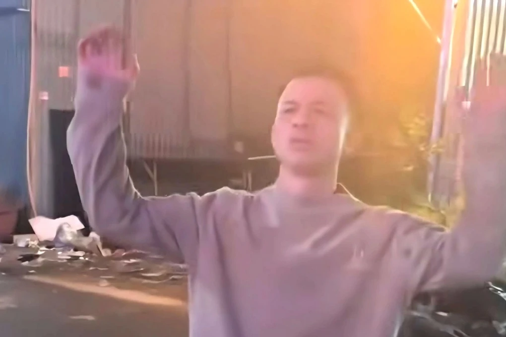 Khoảnh khắc Vi Văn Cương chuẩn bị rời quán (Ảnh cắt từ video ).