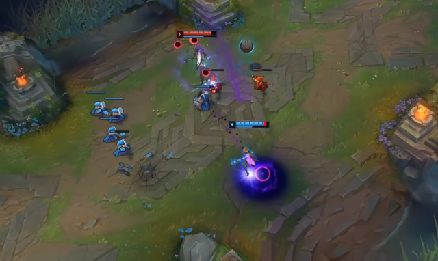 Hơn nữa, chính thời gian tung đòn kể trên cũng khiến cho tướng của bạn đứng yên tại một vị trí khi đánh thường, vì vậy người ta thường tung kỹ năng định hướng khi kẻ địch đang tấn công hoặc ăn lính. Thời gian đứng yên này lâu hay chậm sẽ phụ thuộc vào chất tướng, vì thế mà những tướng có thời gian delay lâu như Anivia hay Karthus không còn quá ưa chuộng ở đường giữa hiện tại.