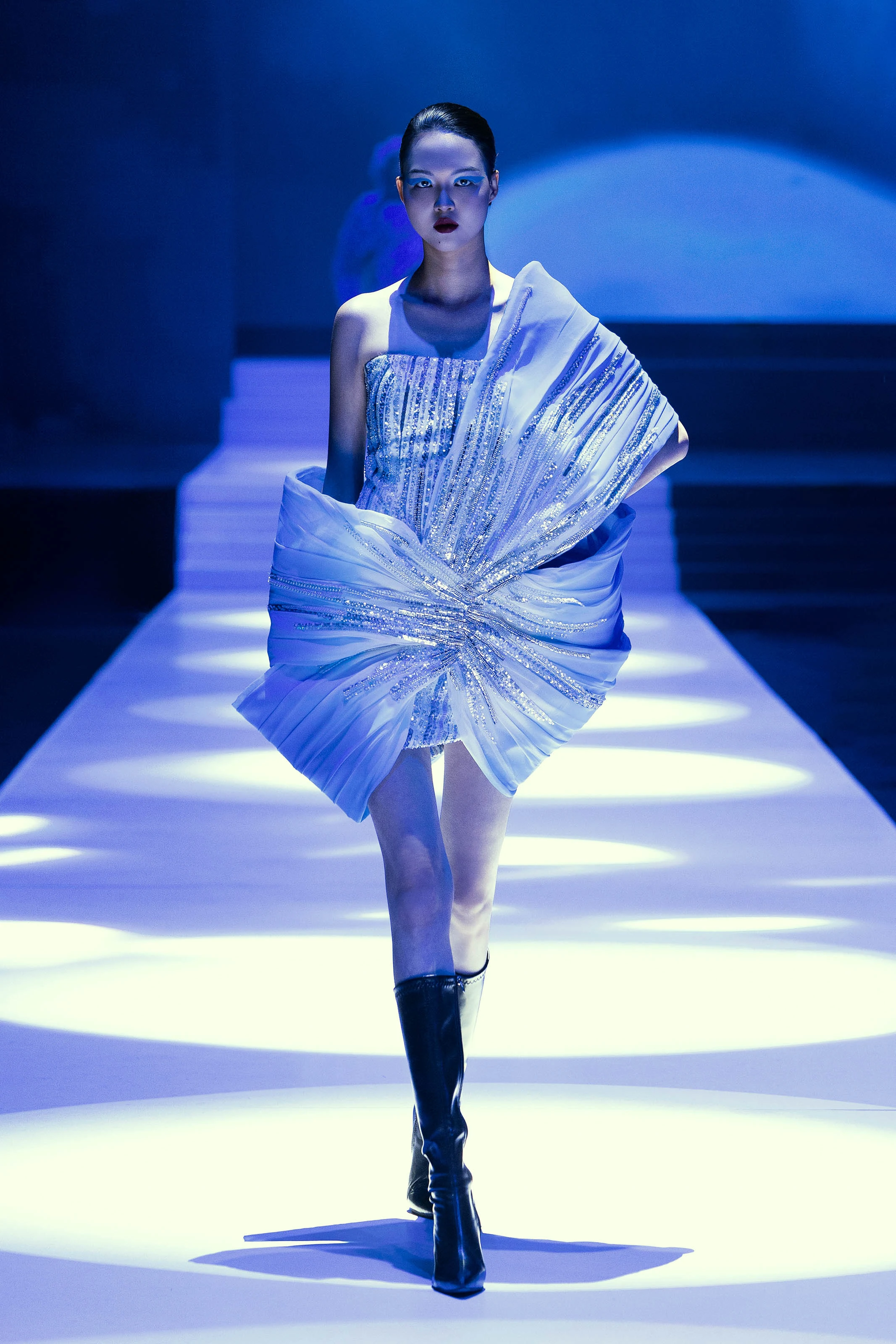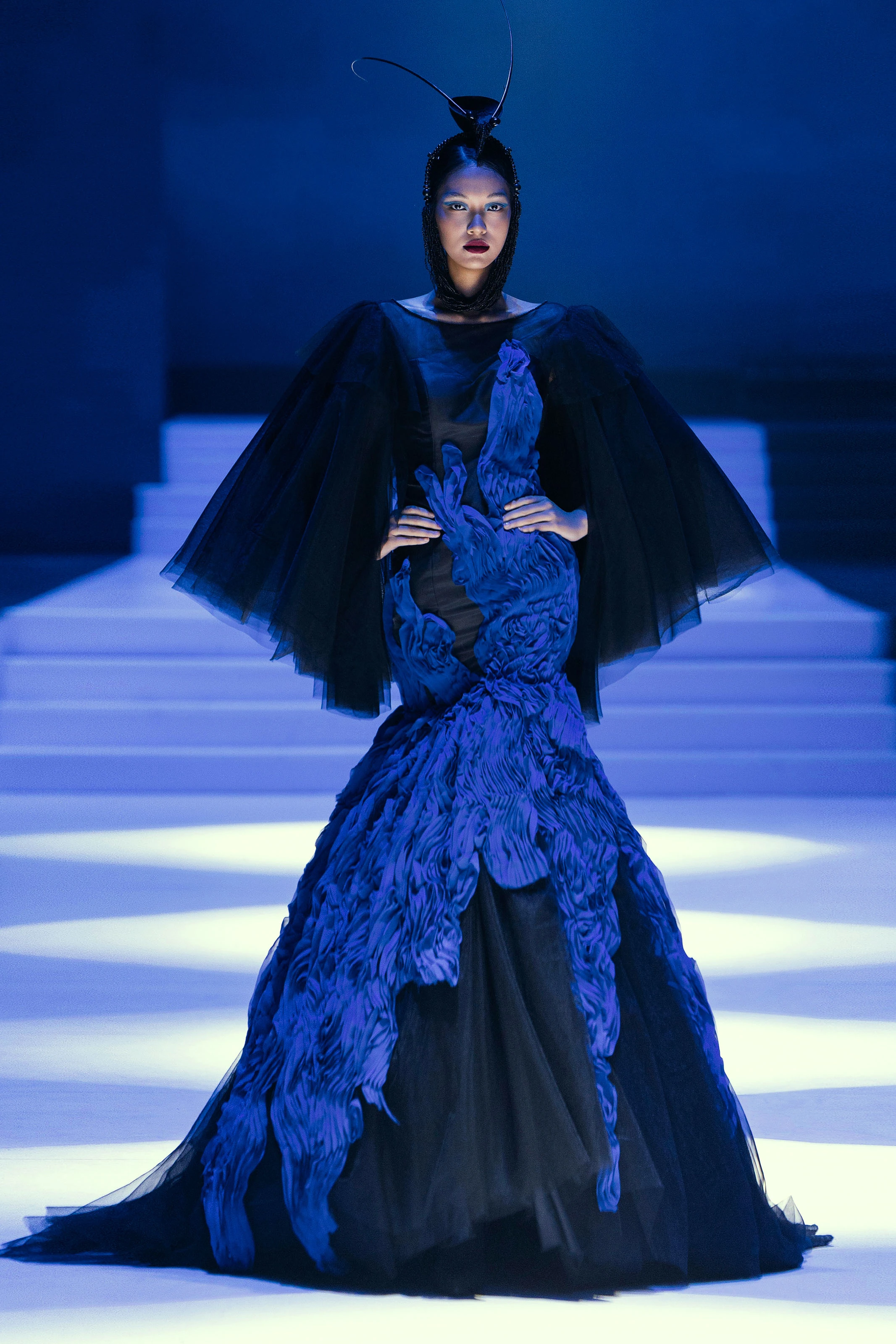 Nhà thiết kế Singapore Frederick Lee trở lại với sàn diễn AVIFW F/W 2025 với bộ sưu tập Haute Couture Nocturne Éternelle tinh xảo. Các thiết kế lấy cảm hứng từ sắc đen thẫm của cánh quạ, ánh sáng phản chiếu mê hoặc trên lớp vảy rắn và vẻ tinh tế của từng lớp vải ren