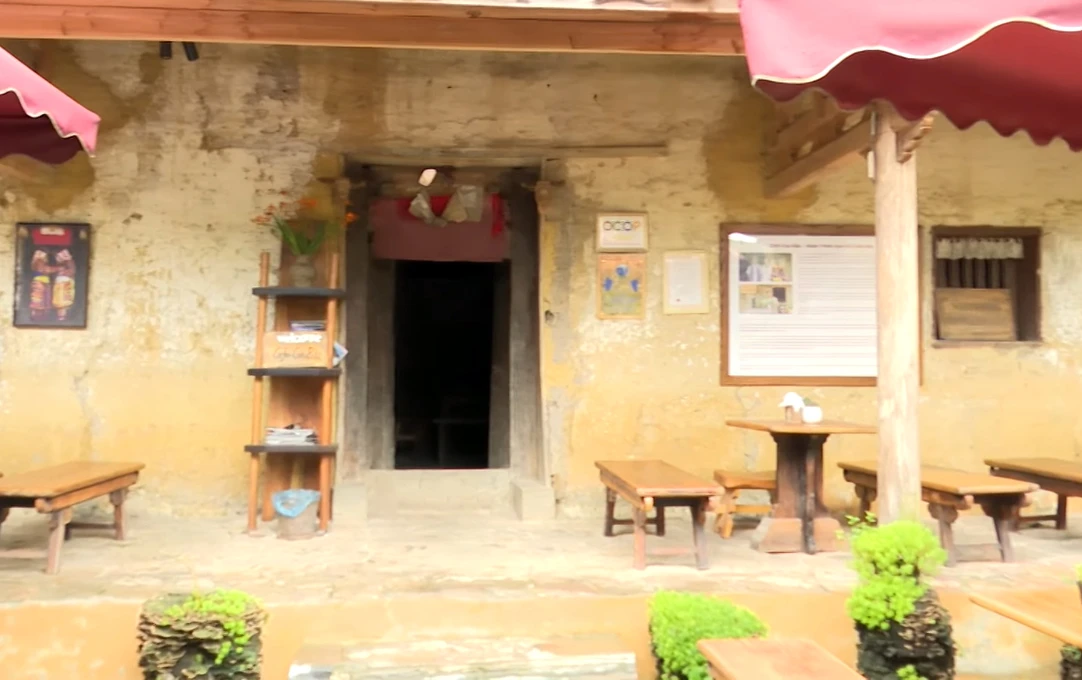 Buôn làng với những ngôi nhà cổ hàng trăm tuổi, nhà trình tường, mái ngói âm dương, hàng rào đá.