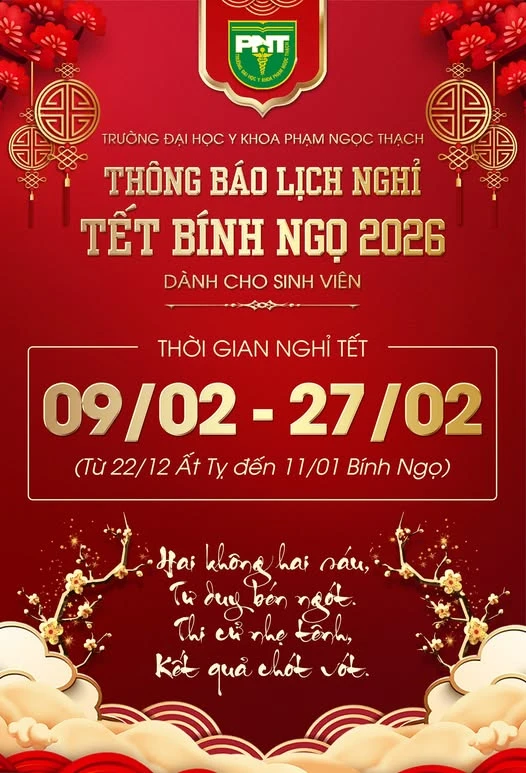 Thông báo nghỉ Tết lạ nhất mùa Xuân 2026: “Tắt đèn sách vở” – ĐH Y khoa Phạm Ngọc Thạch gây sốt!
