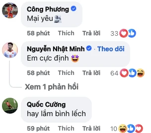 Điều đáng chú ý nằm ở phần bình luận. Hàng loạt tuyển thủ U23 Việt Nam đồng loạt xuất hiện, để lại những lời “cảm ơn”, biểu tượng trái tim, cái vỗ vai hay emoji nắm tay. Không cần giải thích dài dòng, ai cũng hiểu vì sao.