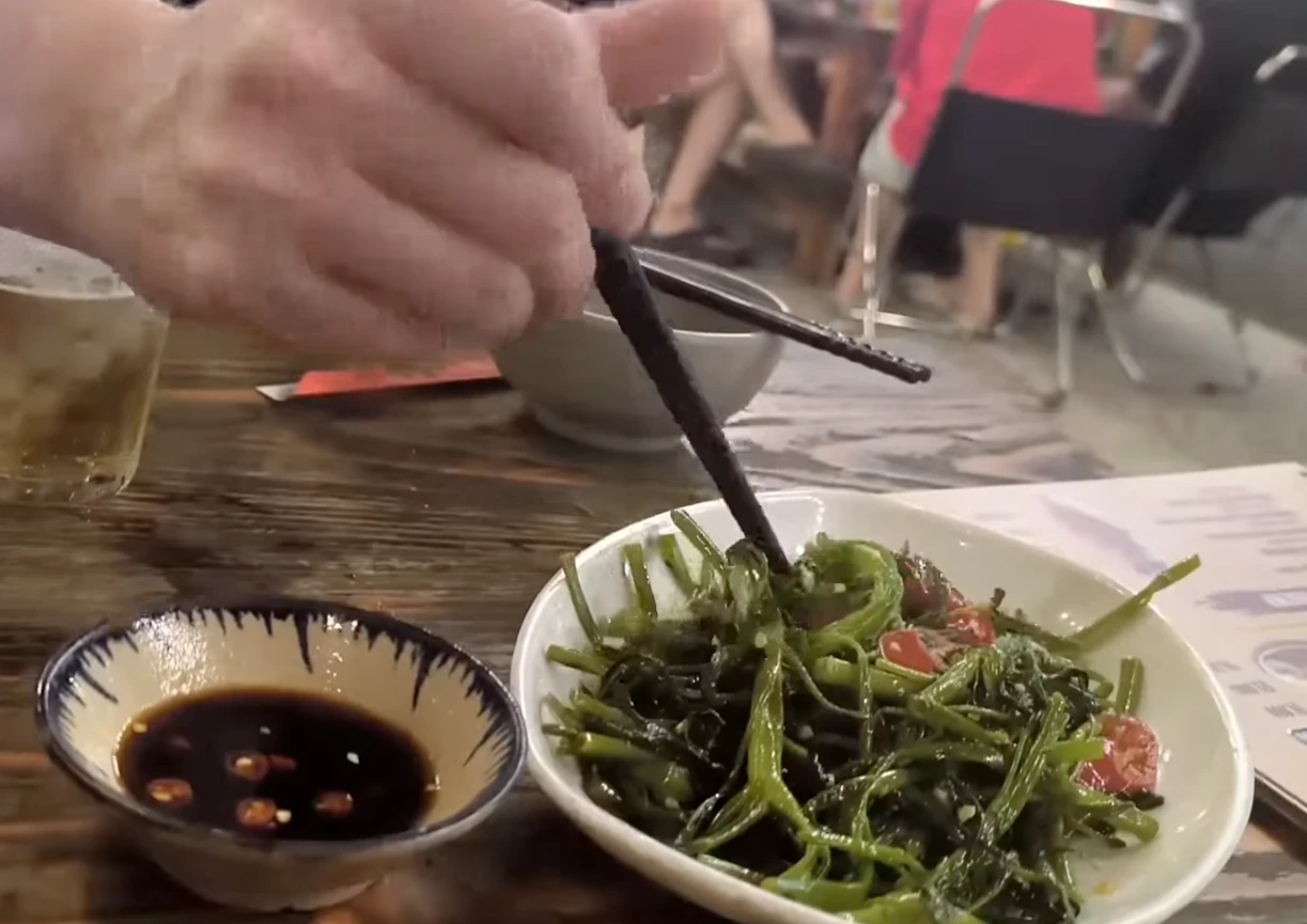 Món rau muống xào tỏi khiến du khách Nhật thích thú (Ảnh: Chụp màn hình).