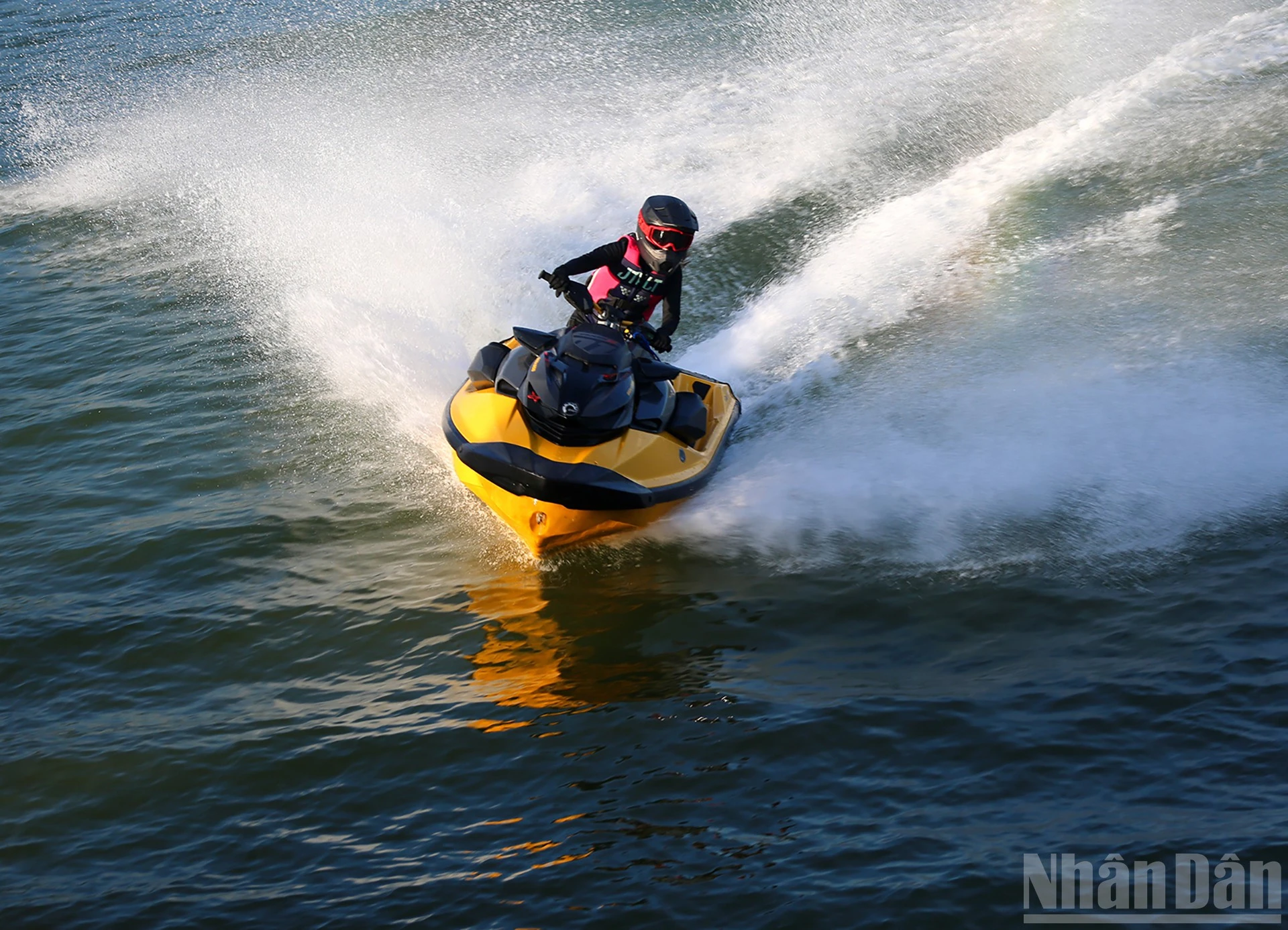 Trong số các môn thể thao dưới nước, mô-tô nước mạo hiểm, tốc độ được nhiều du khách thích trải nghiệm.