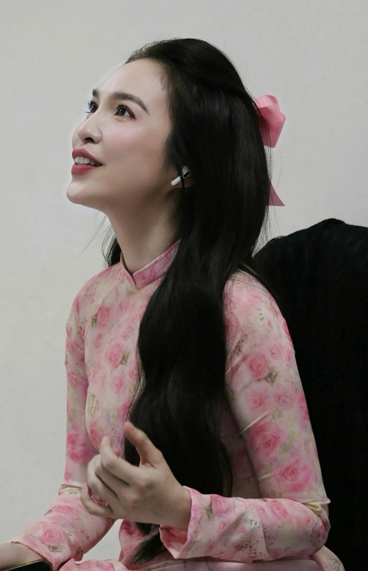 Ca sĩ Hiền Thục được khen trẻ đẹp “quên tuổi” trong tà áo dài hồng phấn.
