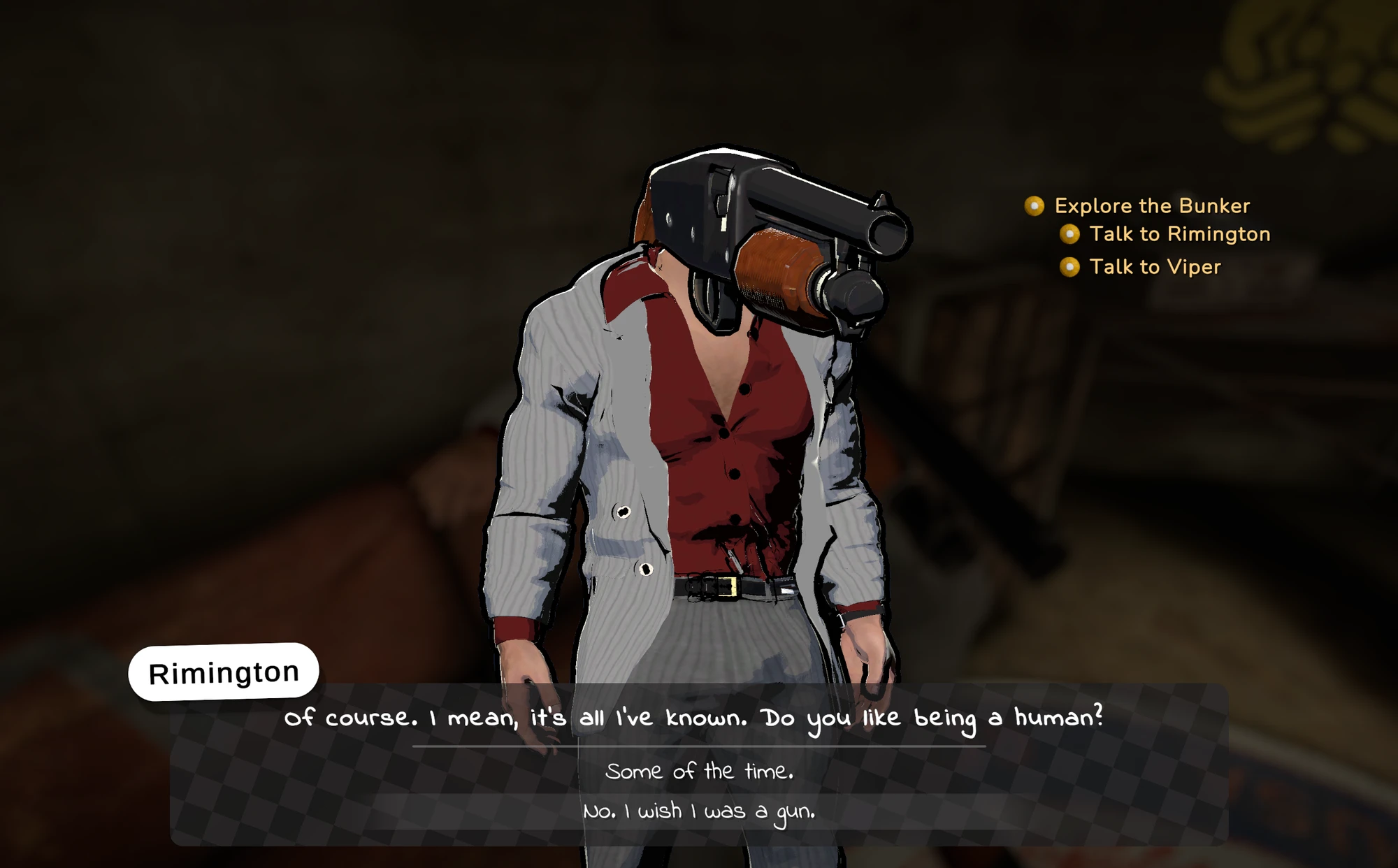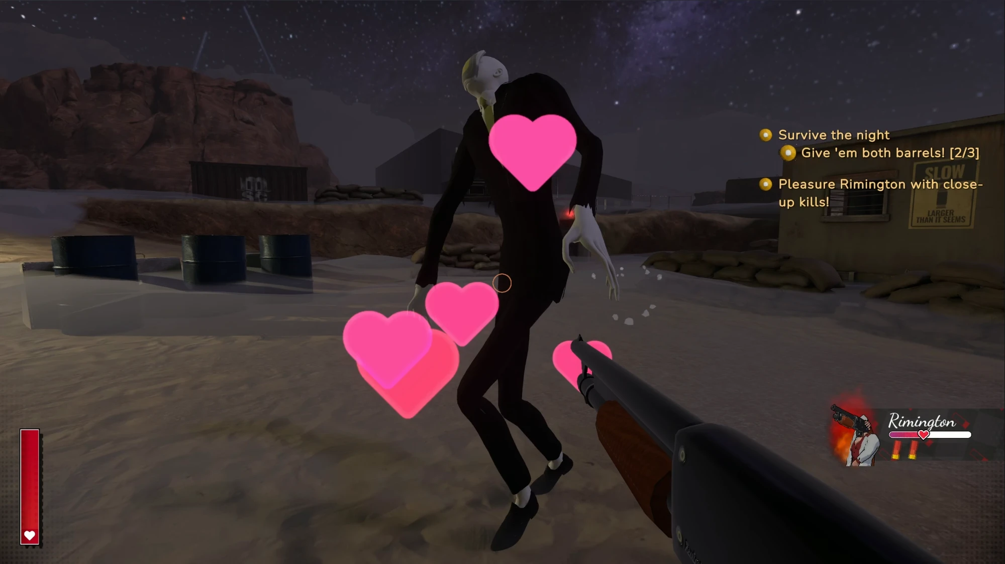 Bối cảnh game đặt người chơi vào một chuyến trip ảo giác kỳ quái, nơi họ có khả năng nhìn thấy vũ khí dưới hình dạng con người. Tổng cộng có năm ứng viên hẹn hò, bao gồm shotgun Rimington, revolver Viper, cặp SMG The Twins (Marsh và Mello) và RPG Svetlana. Mỗi nhân vật đều được lồng tiếng chuyên nghiệp, sở hữu cá tính riêng và hệ thống tương tác sâu hơn mức tưởng tượng ban đầu.
