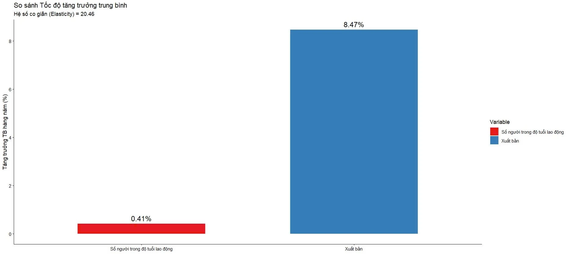 Trong khi dân số lao động tăng trưởng trung bình chỉ 0.41% hàng năm, tốc độ tăng trưởng trung bình của ngành xuất bản đạt tới 8.47%. Điều này có nghĩa là mỗi người lao động Việt Nam có khả năng tiếp cận với lượng tri thức lớn hơn gấp nhiều lần so với chỉ 7 năm trước.