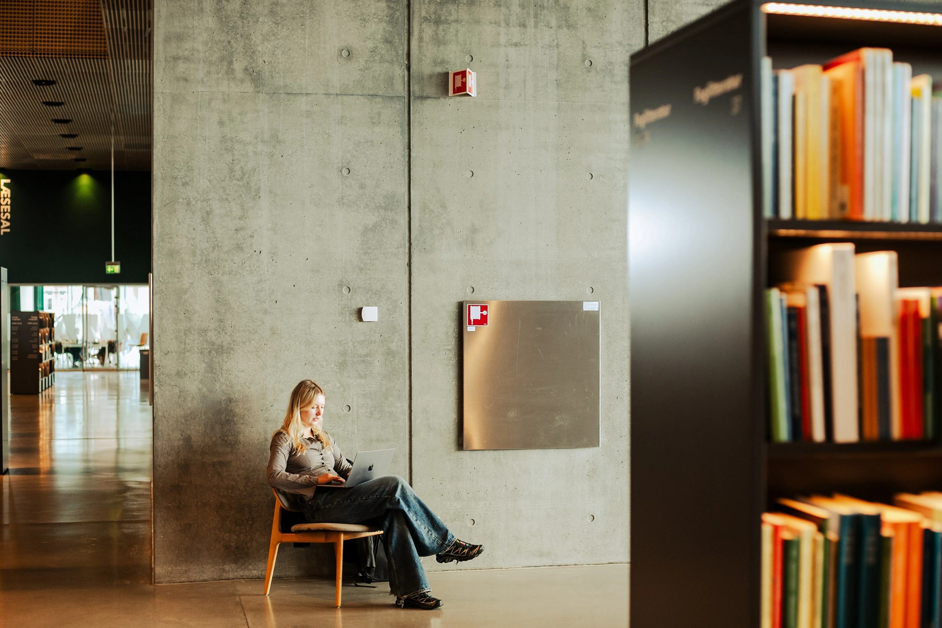 Một bạn trẻ ngồi làm việc tại thư viện Dokk1. Ảnh: Đức Huy.