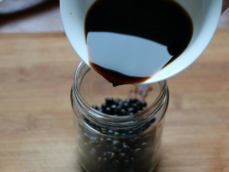 Đổ đậu đen vào hũ thủy tinh có nắp đậy kín, thêm đủ giấm để ngập đậu đen khi chúng vẫn còn nóng, đậy kín nắp thủy tinh để tránh vi khuẩn xâm nhập.