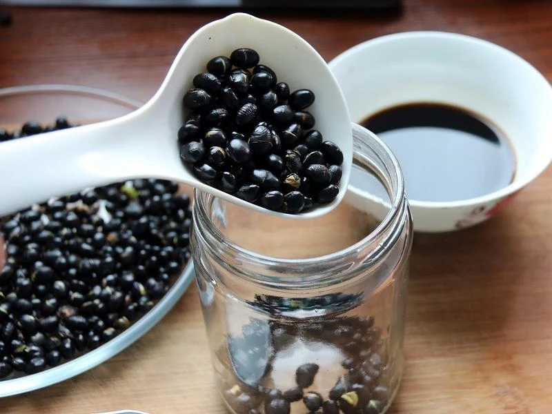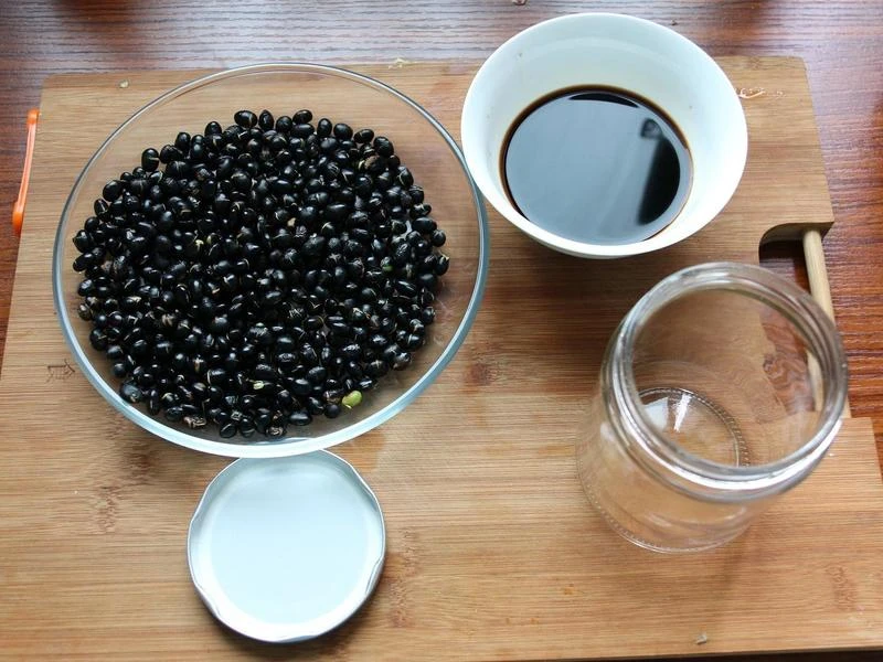 Chọn đậu đen tươi, hạt tròn, nhặt sạch hạt mốc hỏng, ngâm và rửa sạch với nước để loại bỏ những hạt đậu đen xấu nổi lên.